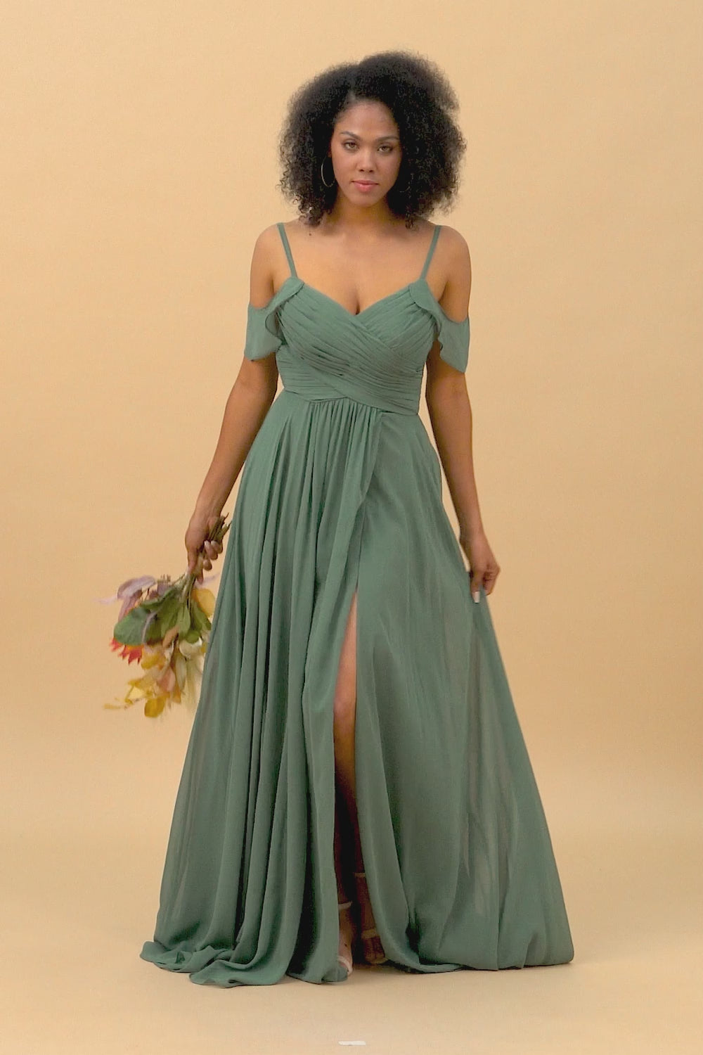 Eukalyptus Ruched Lace-Up Back Lång Chiffong Brudtärnklänning