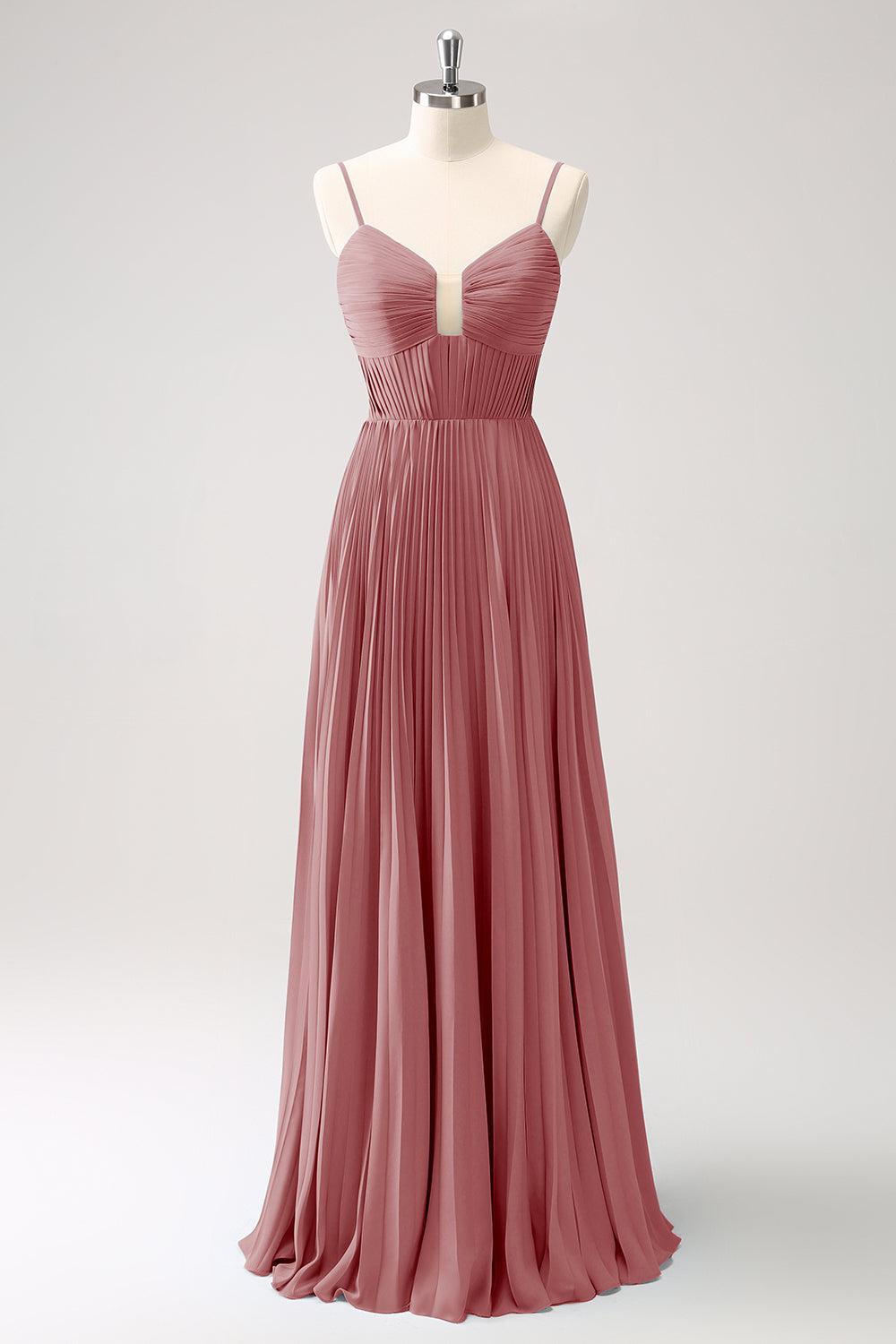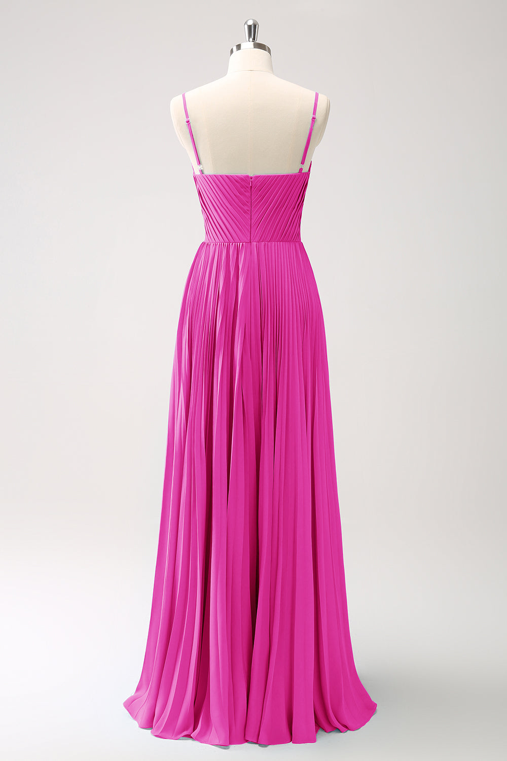 Fuchsia A-linje Spaghetti Remmar Brudtärna Klänning