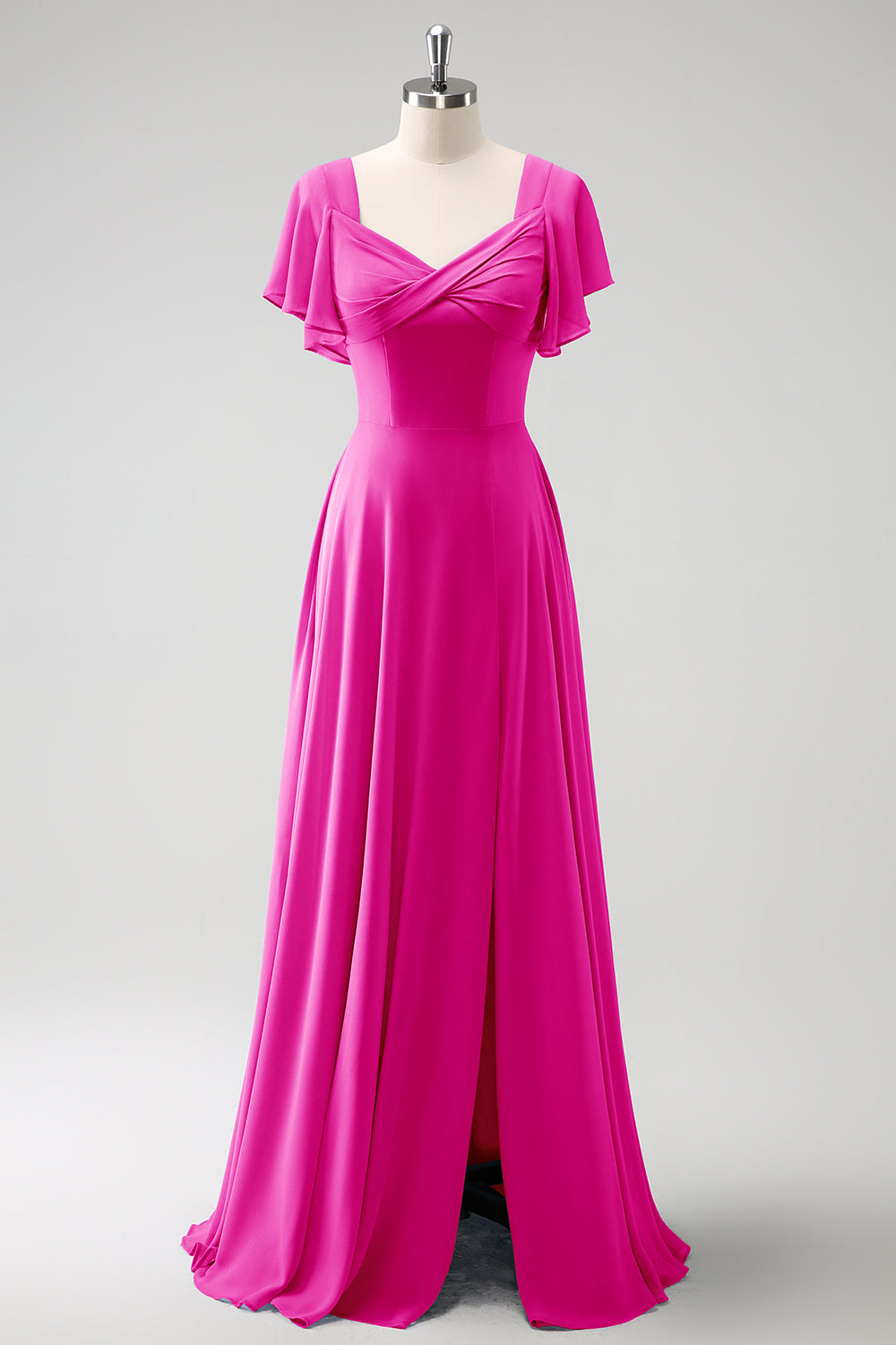 Gråblå A Line Chiffong Lång Brudtärna Klänning Med Slits