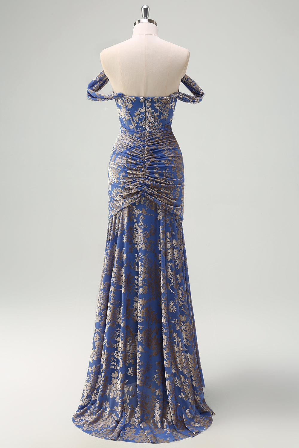Korsett Grå, Blå, Sjöjungfru Från Axeln Rynkad Lång Brudtärna Klänning