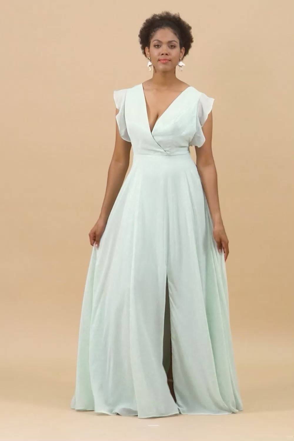 Mint Chiffong V-Neck Brudtärna Klänning