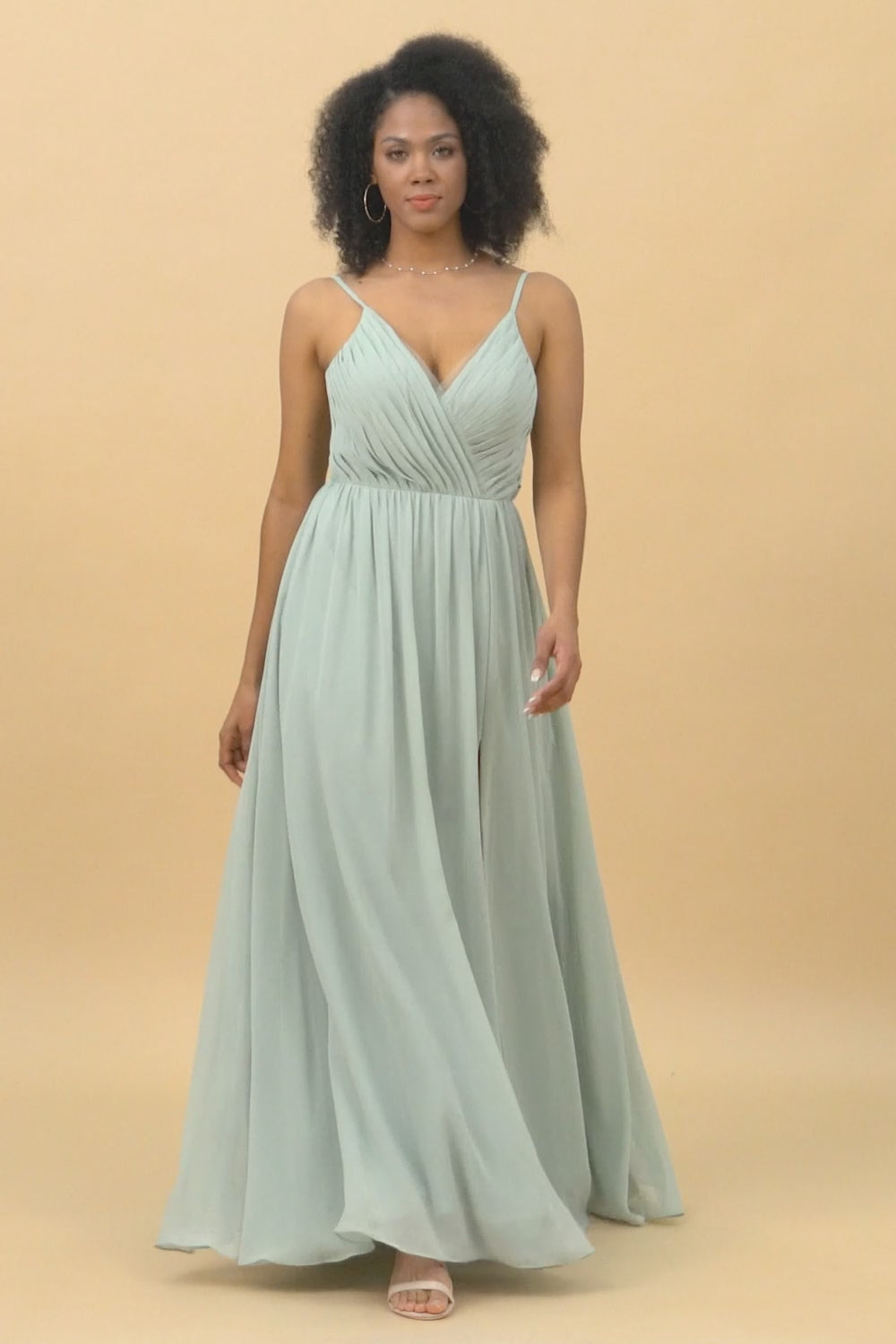 Mint Green A-Line Ruched Chiffong Bridesmaid Klänning