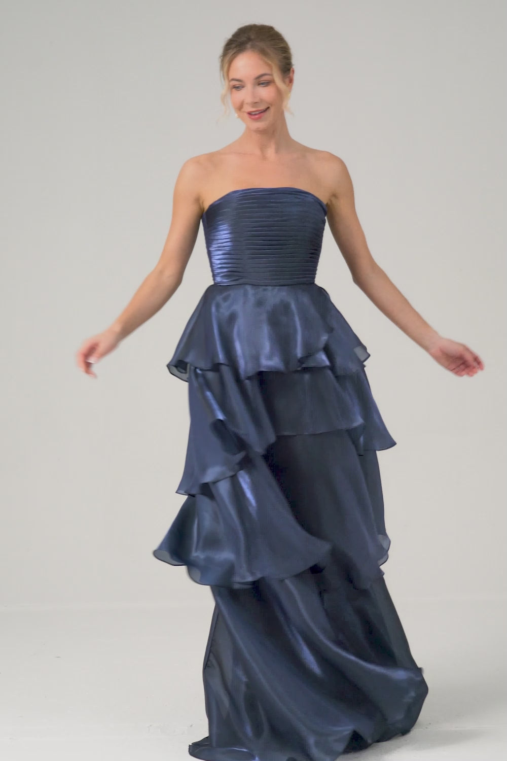 Mörk Marinblå En linje Axelbandslös Nivårad Satin Lång Brudtärna Klänning