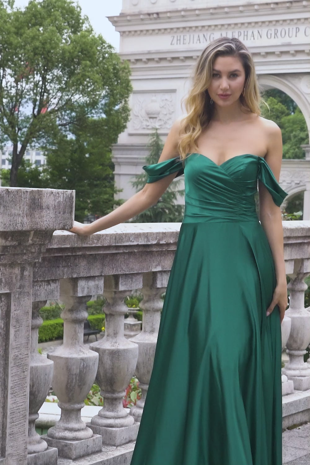 Mörkgrön Off The Shouder A Line Satäng Lång Brudtärneklänning