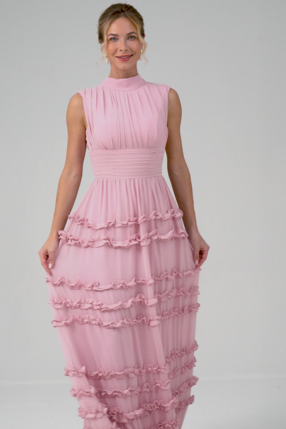 Rouge Ruffled Chiffong A-Line Brudtärneklänning med öppen rygg