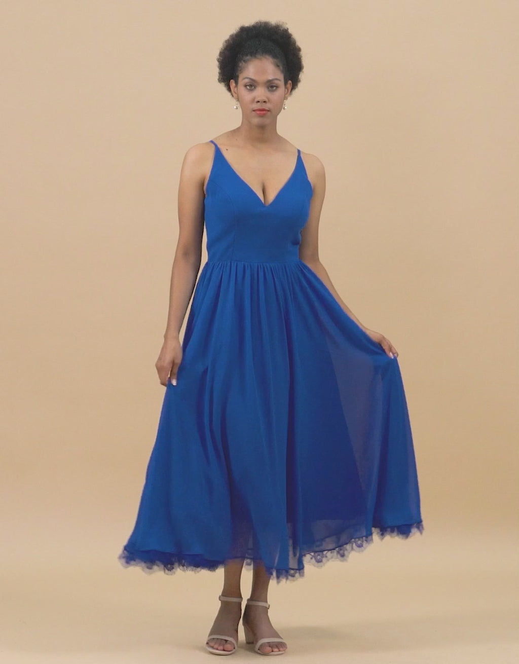 Royalblå V-Ringning Chiffong Brudtärneklänning