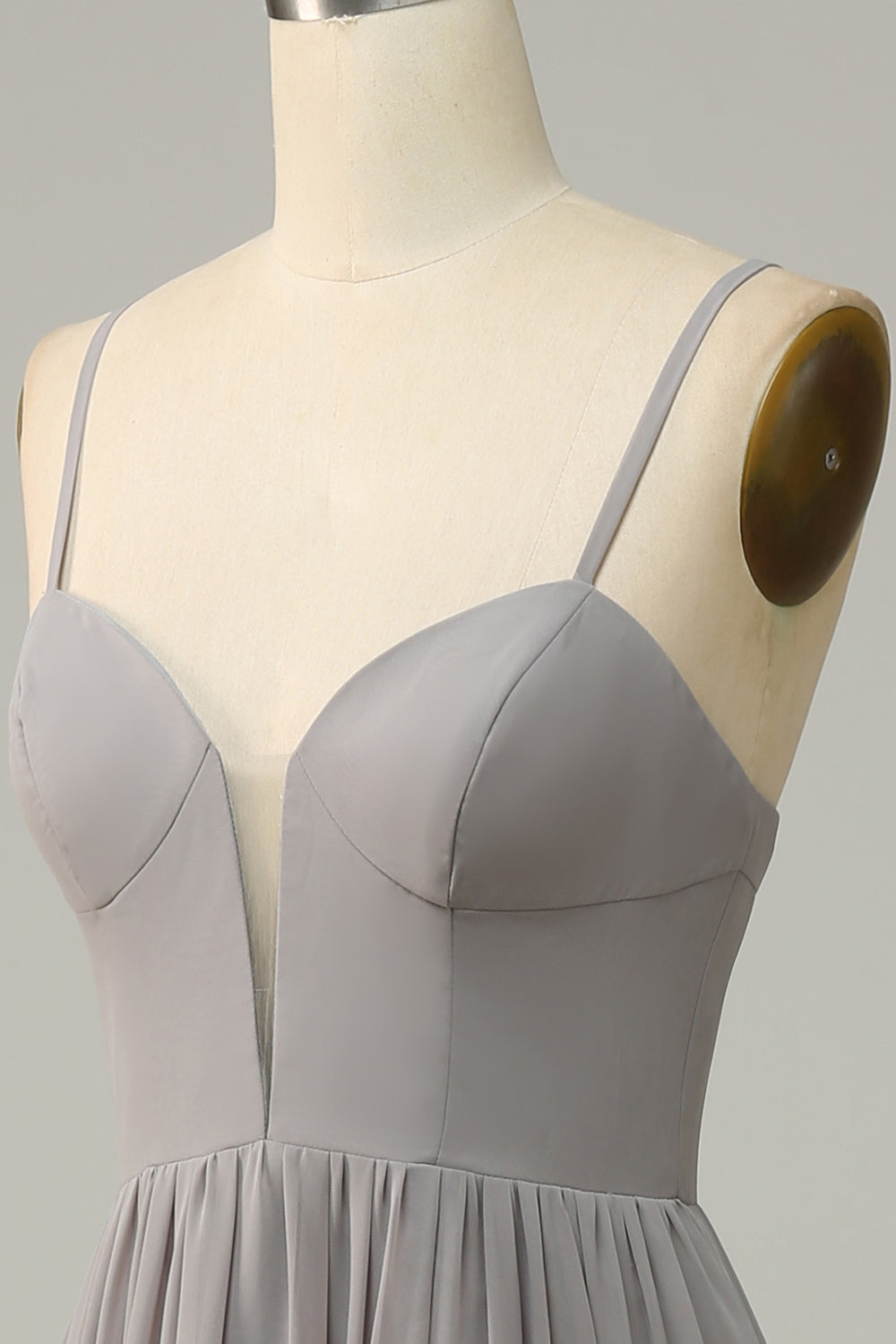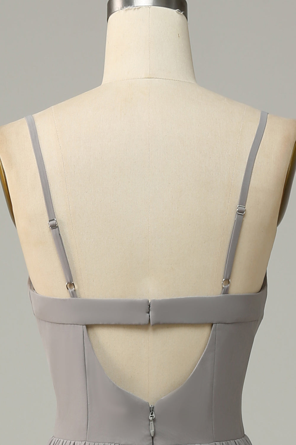 Silver En Linje Spaghetti Remmar Lång Brudtärna Klänning med Slits