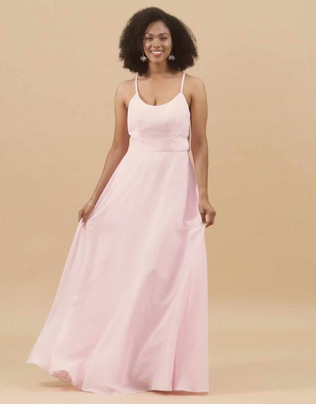 Smala Axelband Chiffong Rosa Brudtärneklänning
