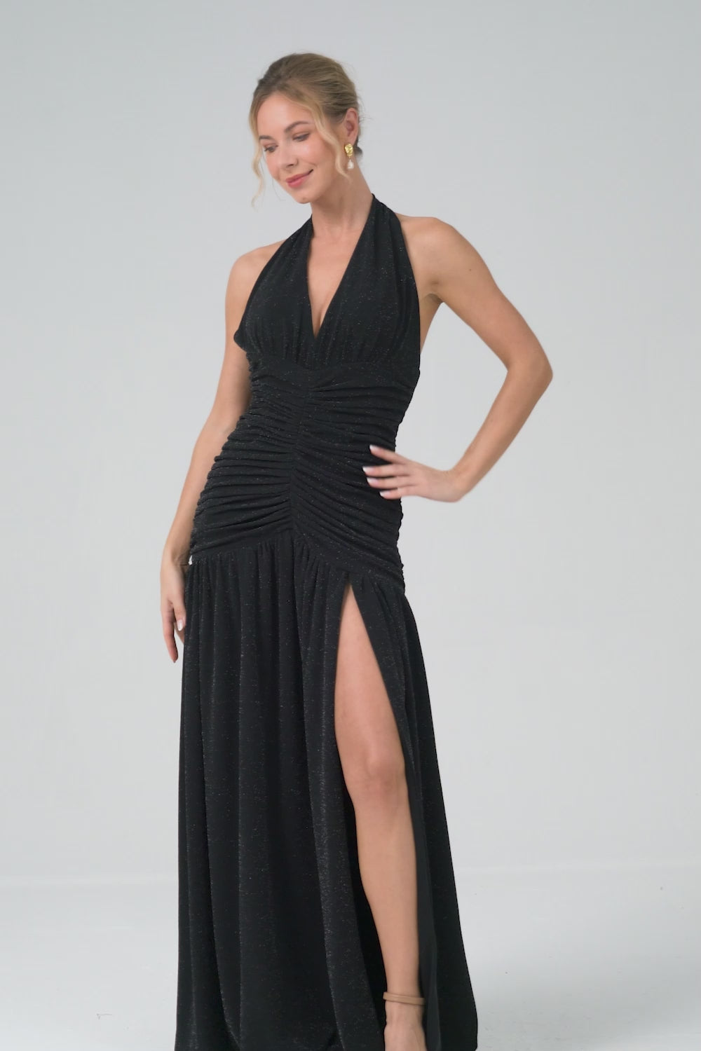 Svart Sjöjungfru Halter Plisserad Backless Lång Brudtärna Klänning