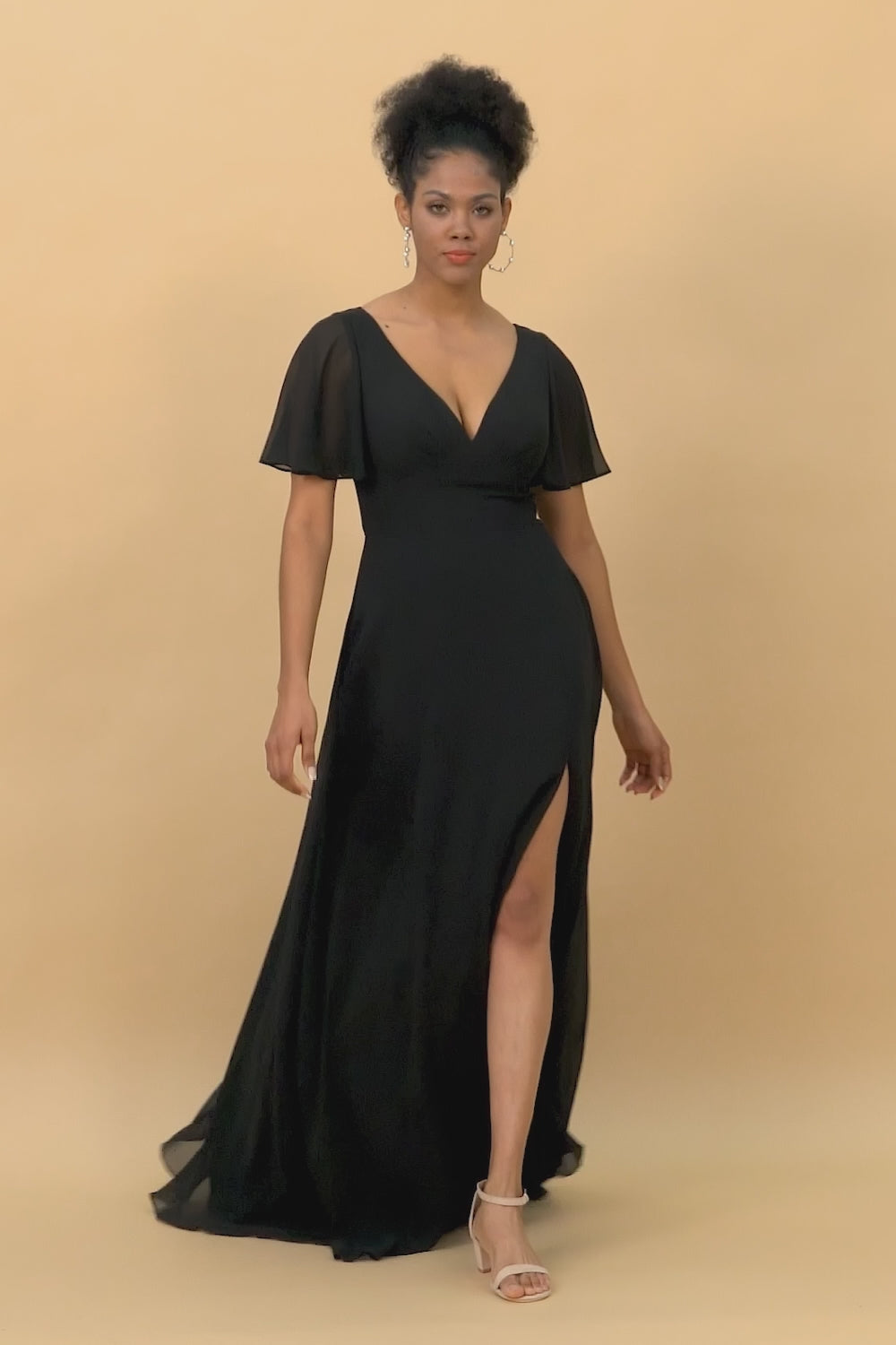 Svarta Batwing ärmar Lång Chiffong Bridesmaid Klänning