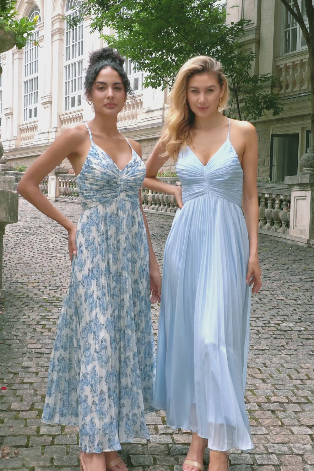 Vit Blå Blomma Spaghetti Remmar En linje Bröllop Gäst Klänning