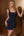 Glittrande Bodycon Fyrkantig hals Mini Mörkblå Homecoming Klänning Med Spalt