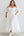 Vit V-ringad A-linje Chiffong Ankellång Liten Vit Klänning med Volanger