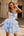 Axelbandslös Vit Blå Blomma Korsett A-linje Tiered Volang Homecoming Klänning