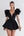 Enkel A-linjeformad V-ringad Liten Svart Klänning med Volanger Ärmar