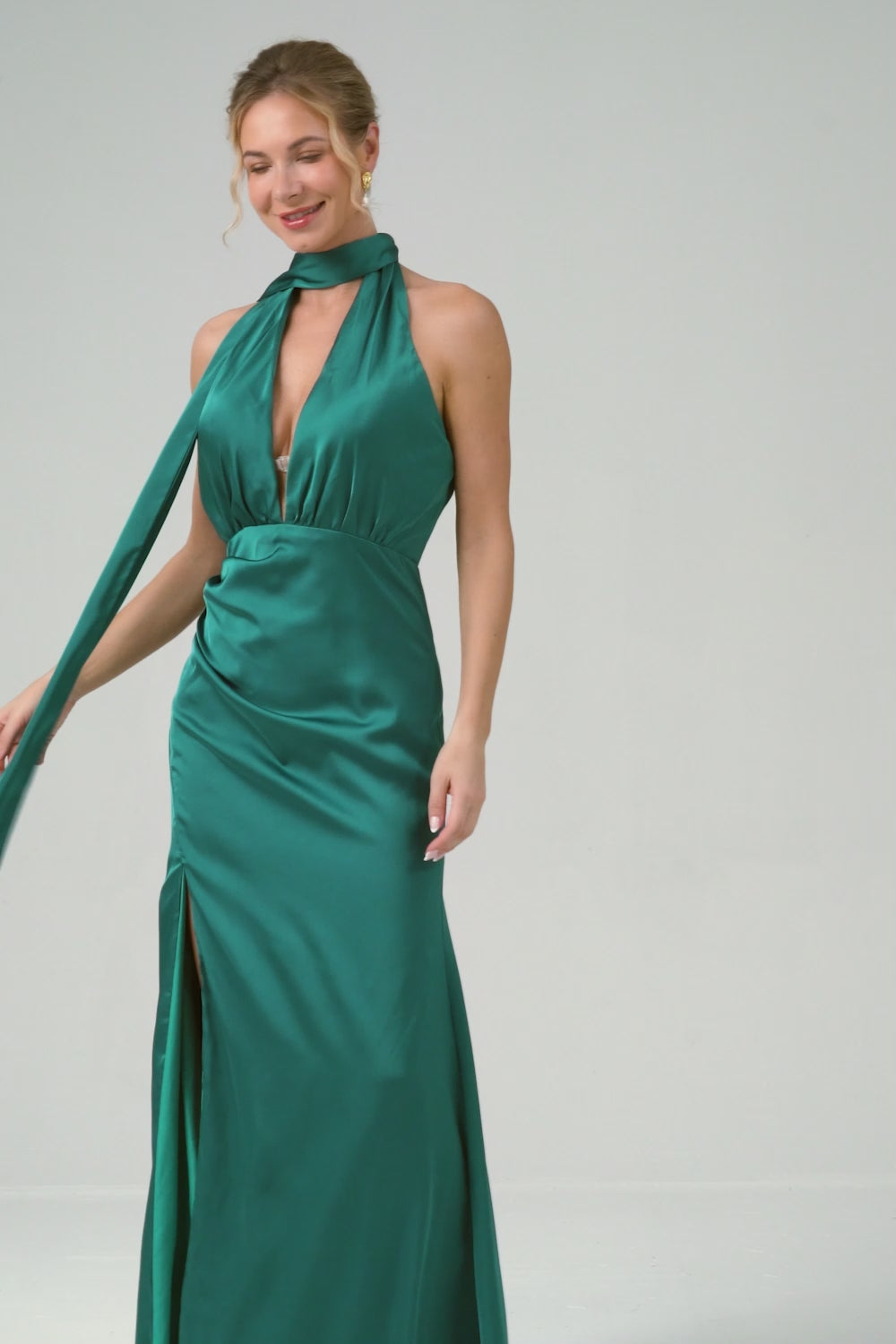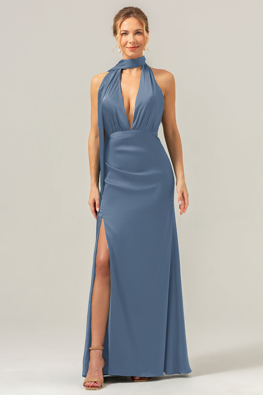 Påfågel Slida V-ringad Rygglös Lång Brudtärna Klänning med Slits