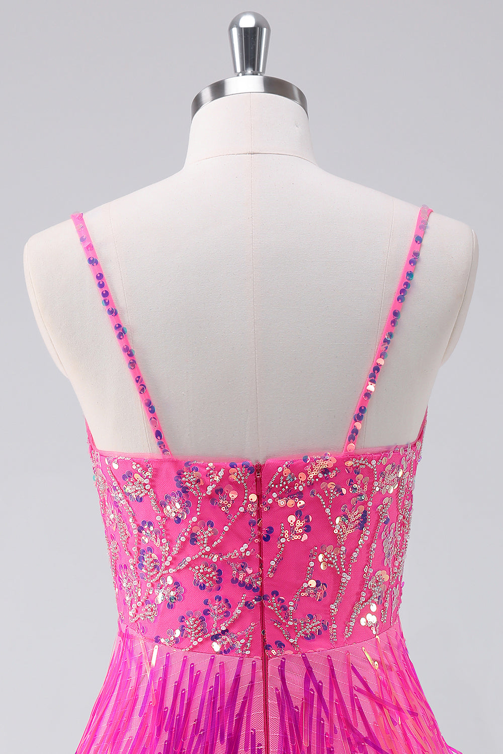 Glittrande Chockrosa En linje Spaghetti Remmar Fransar Paljetter Homecoming Klänning