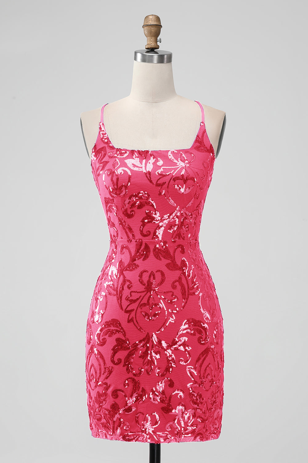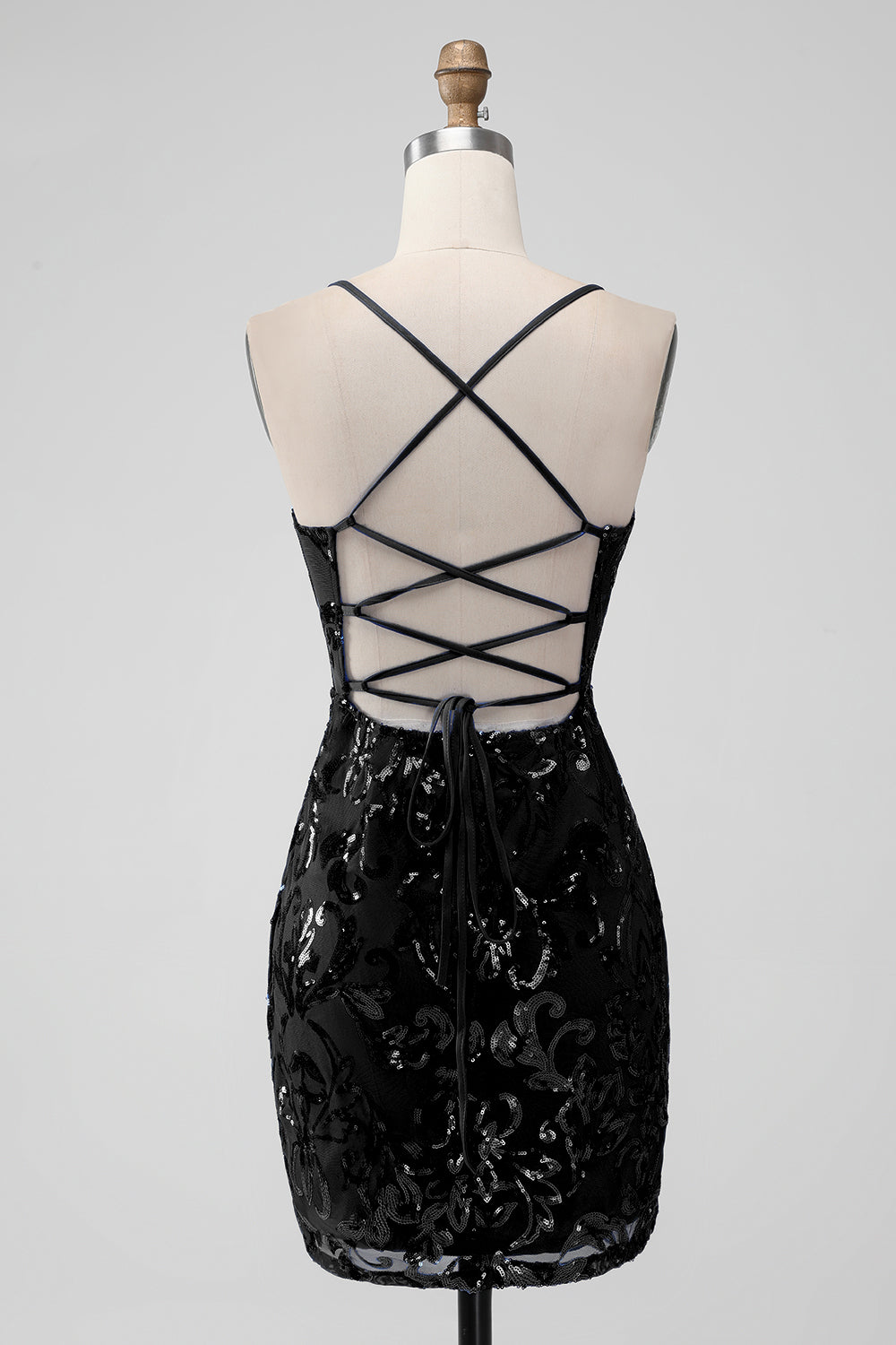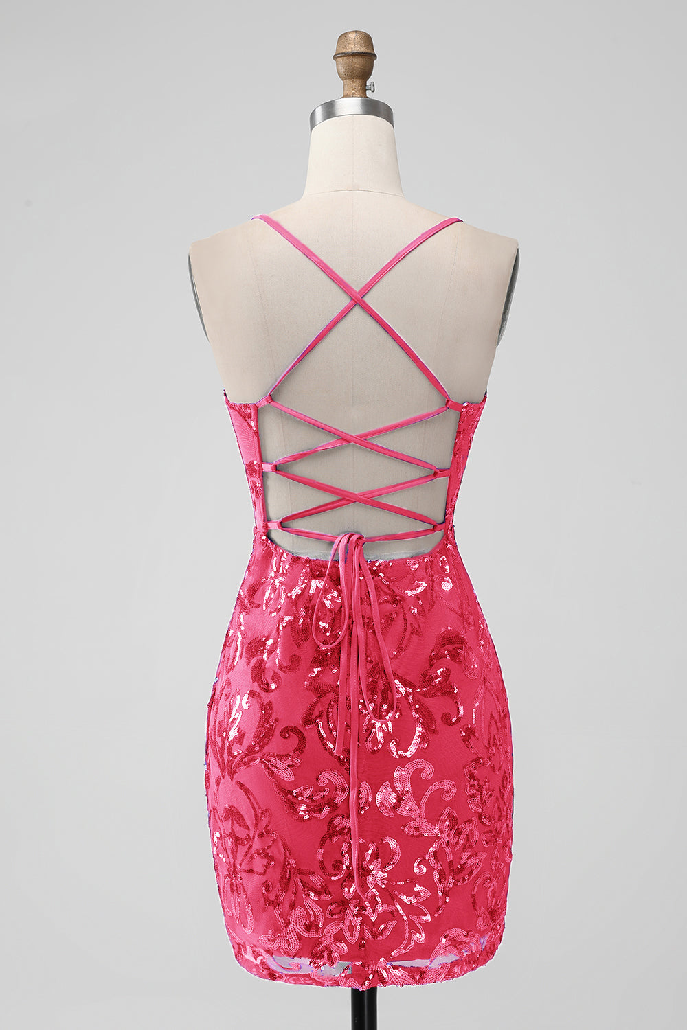 Royal Blue Bodycon Paljetter Kort Homecoming Klänning med Snörning Tillbaka