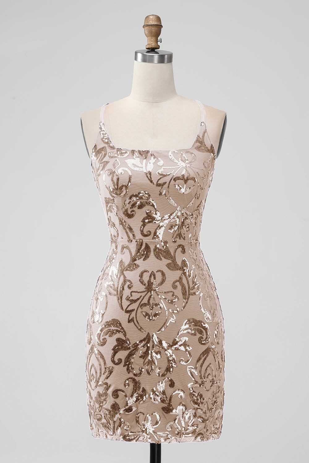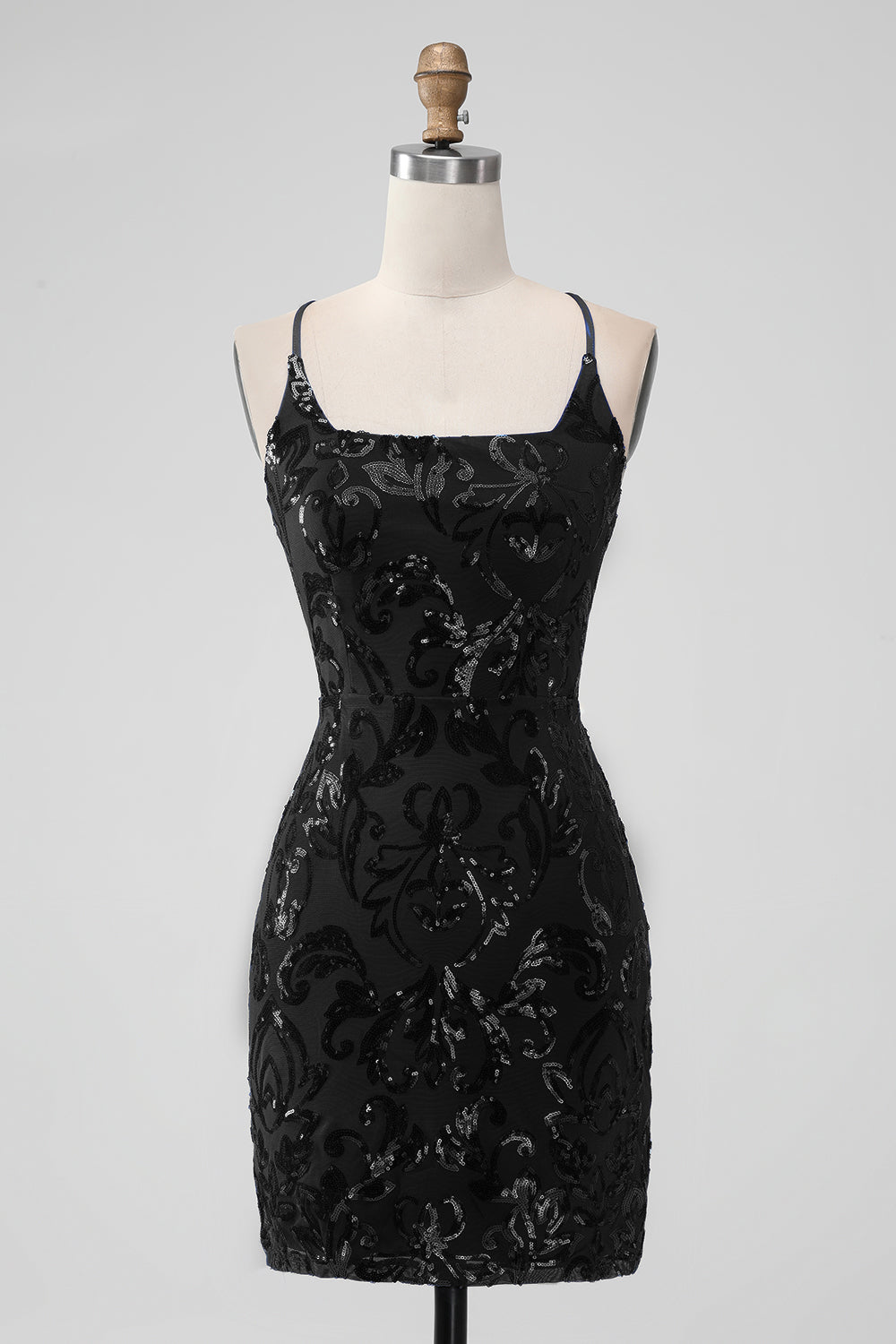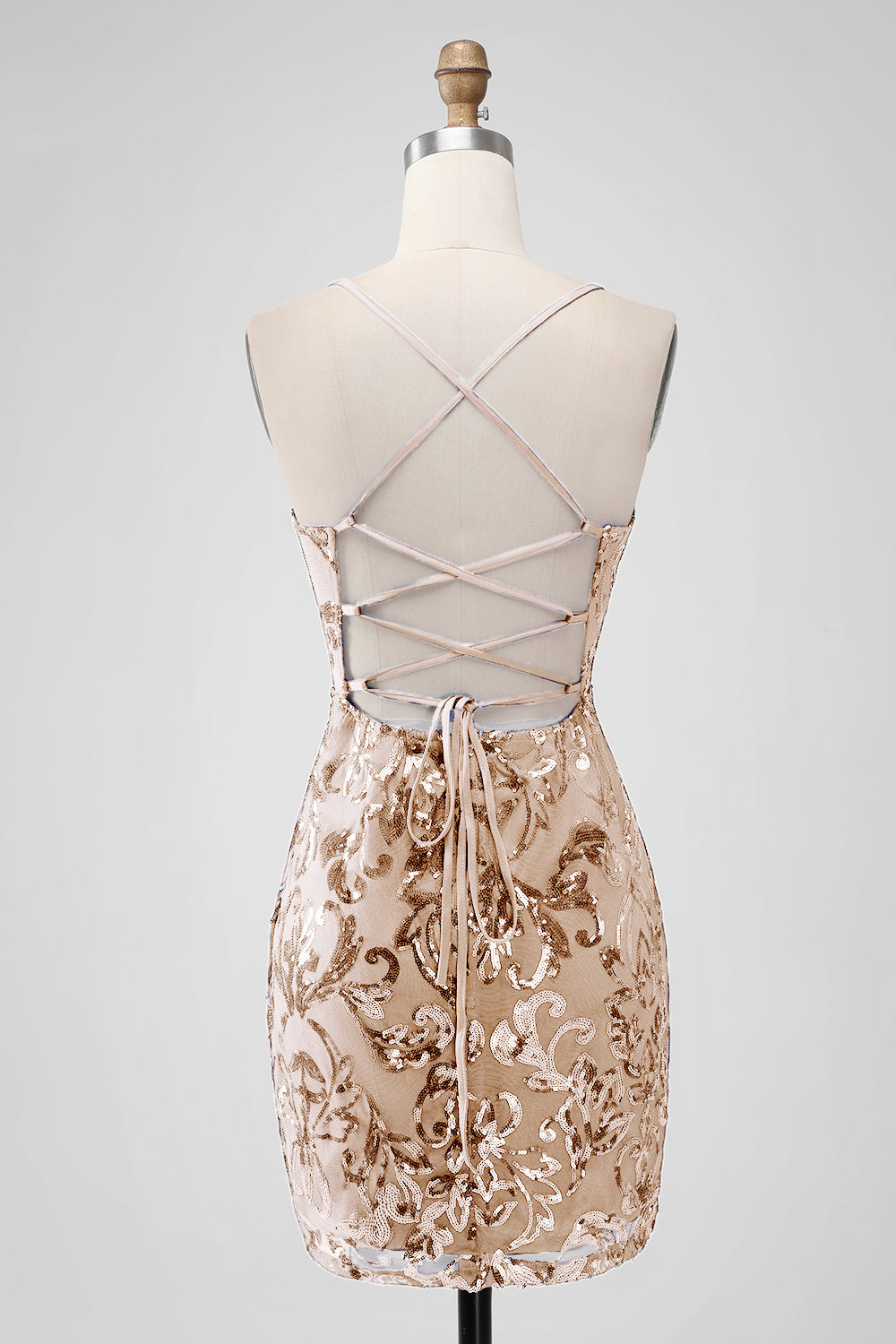 Royal Blue Bodycon Paljetter Kort Homecoming Klänning med Snörning Tillbaka