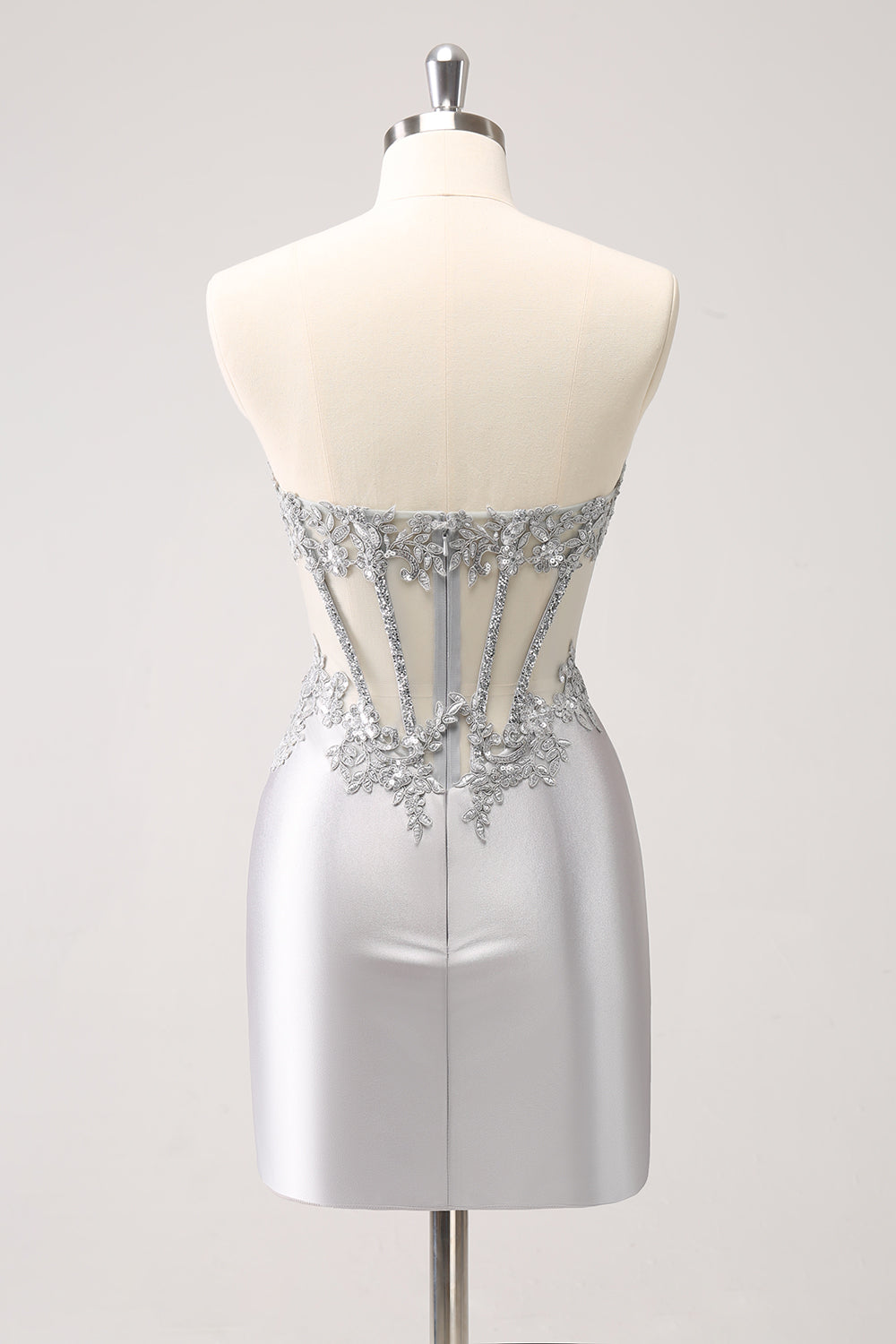 Silver Axelbandslösa Paljetter Korsett Tight Homecoming Klänning