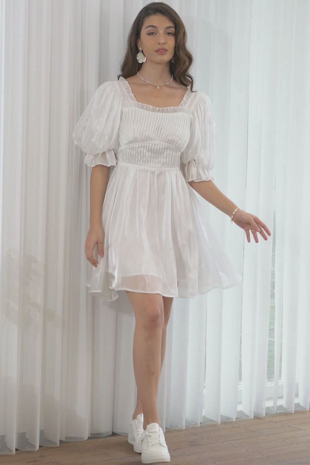 Tyllplisserad liten vit klänning med snörning i ryggen
