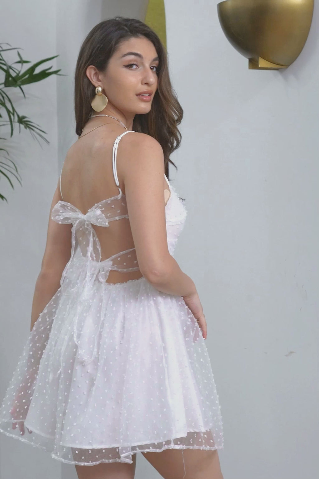 Vit A-linje Spaghetti Straps Kort Examen Klänning