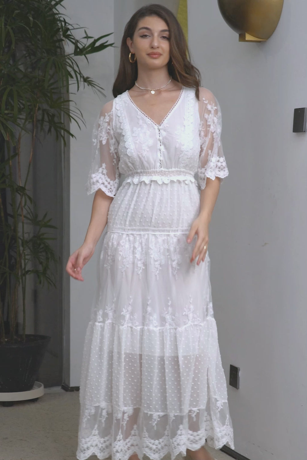 Vit En Linje Lång Boho Spets Förlovning Fest Klänning
