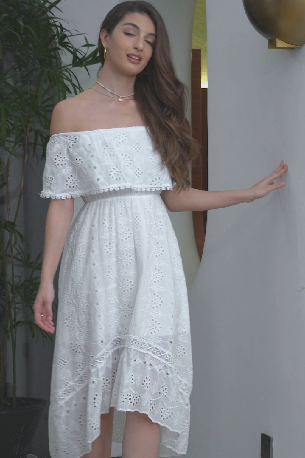 Vit Hög Låg Ihålig Boho Förlovningsfestklänning