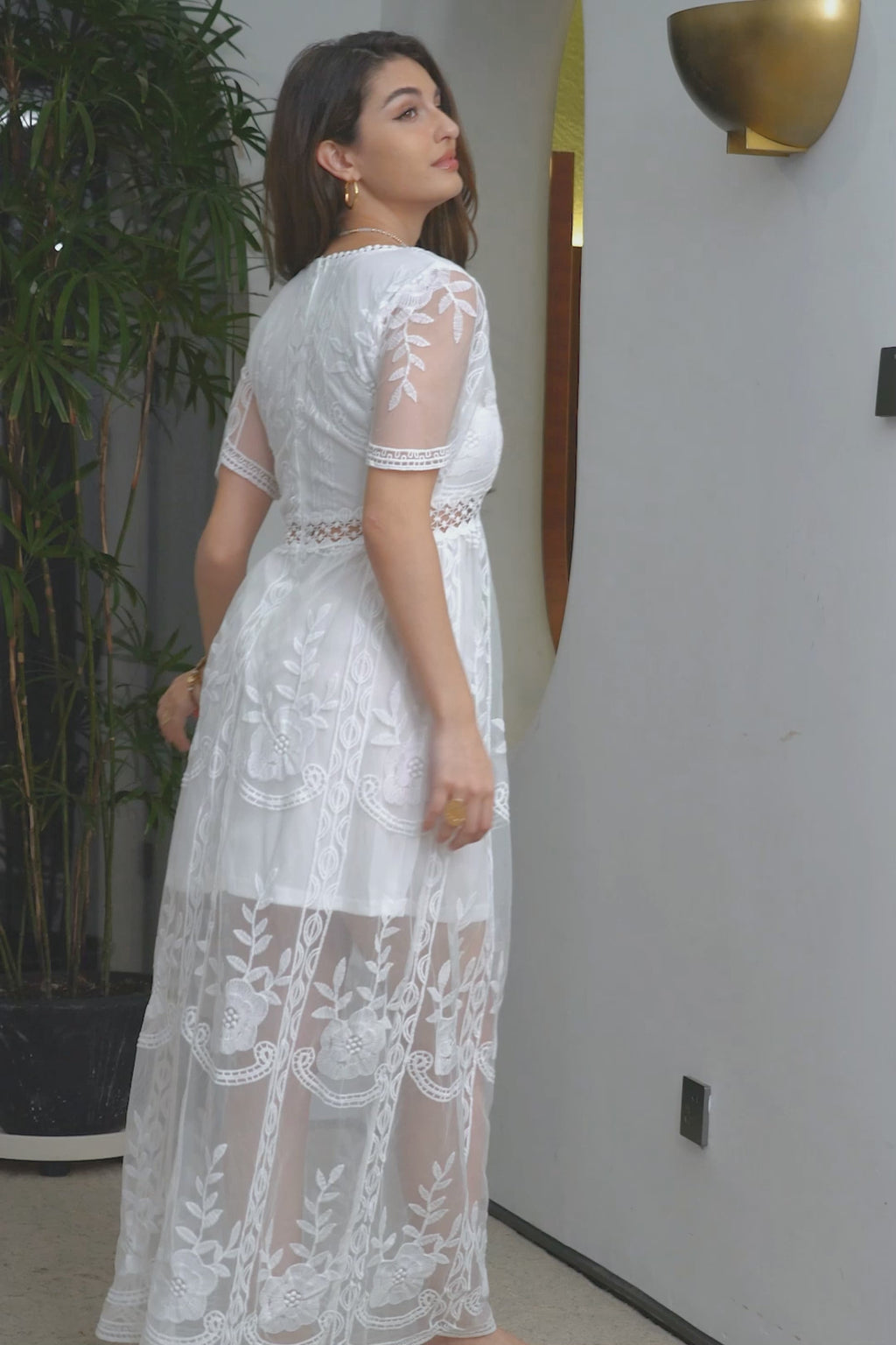 Vit Maxi Batwing Ärmar Formell Festklänning med Spets