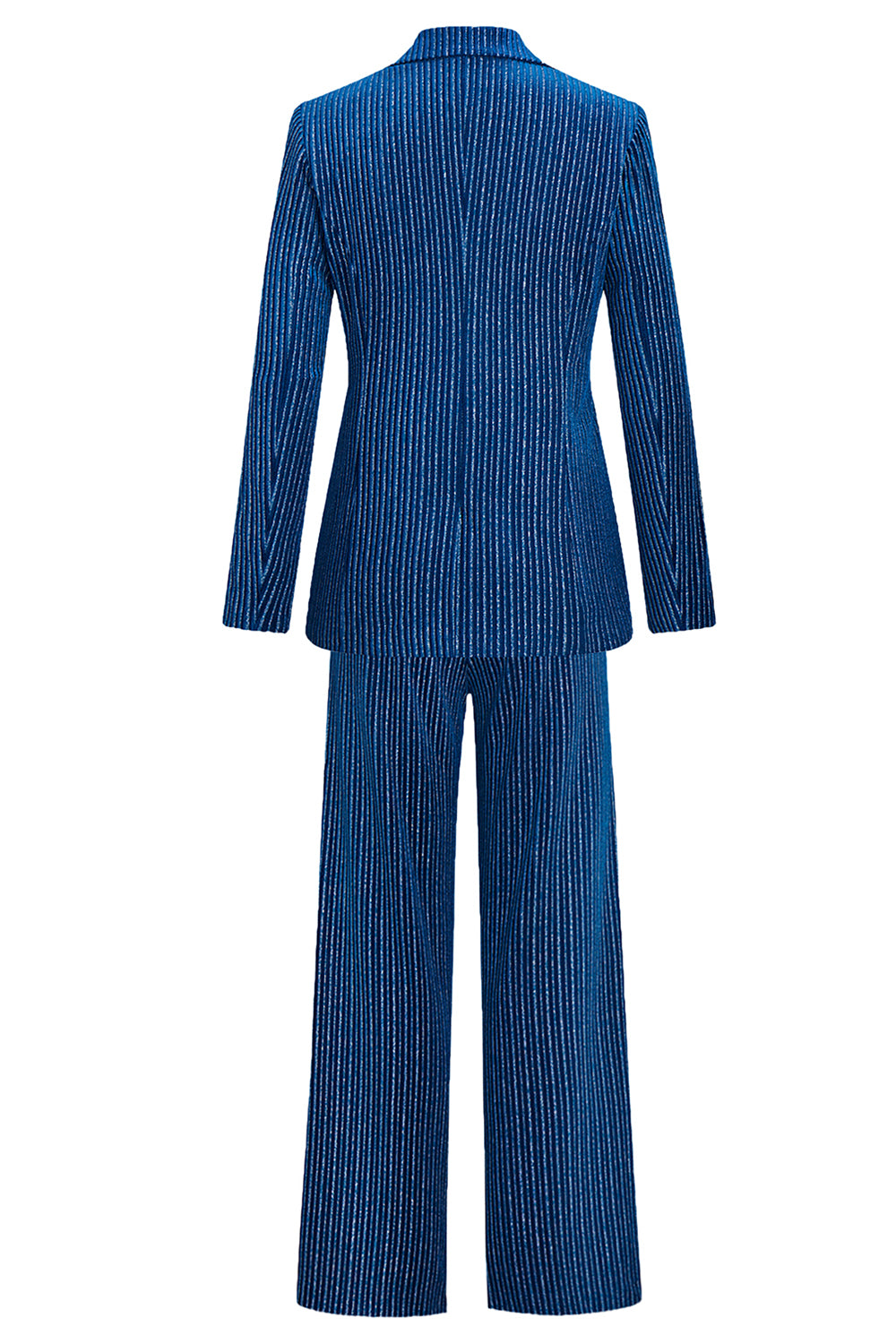 Bläck Blå Randig Enkelknapp 2 Delar Dam Kostymer