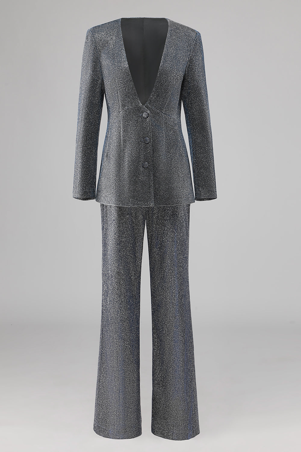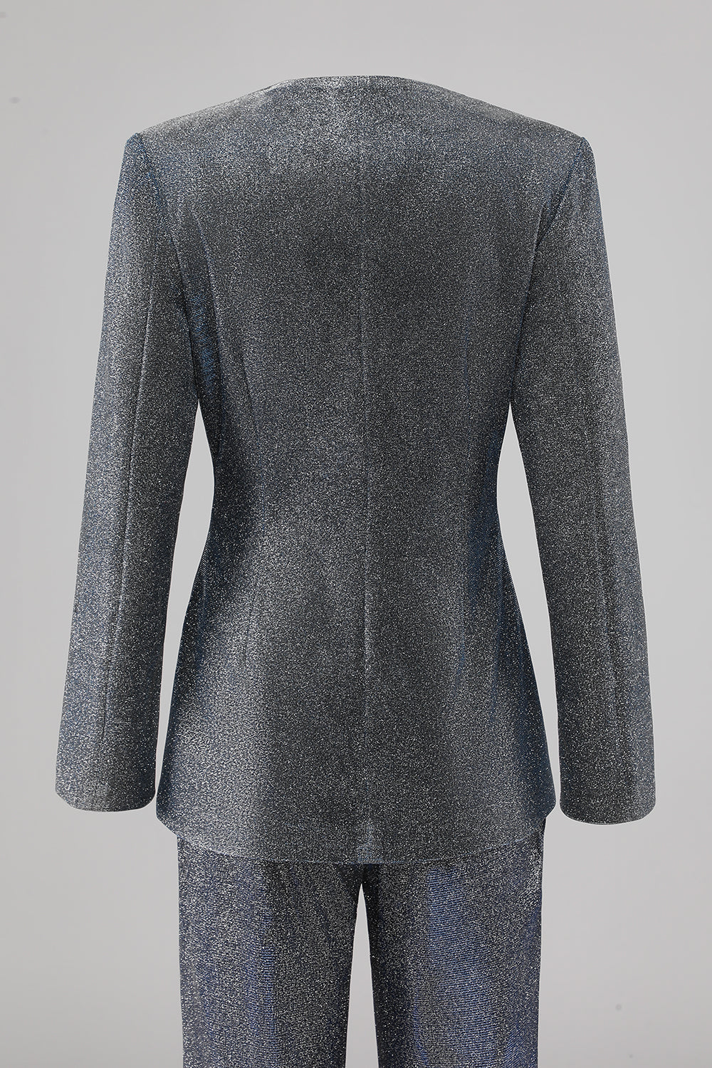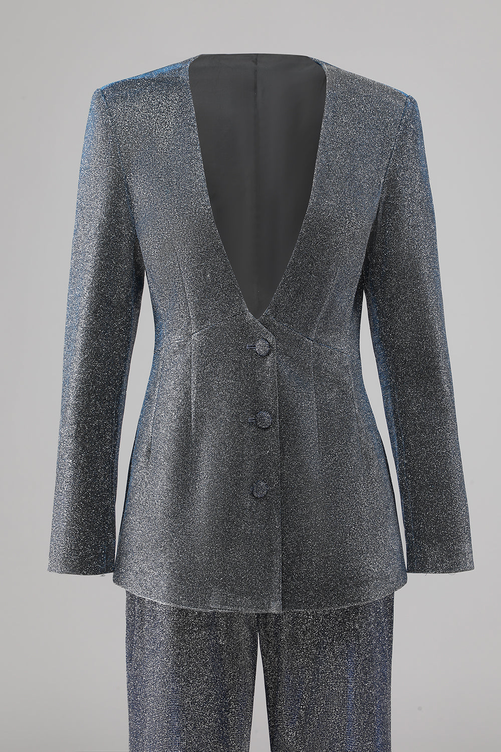 Grå Blå V-ringad Enkelknapp Dam Kostymer