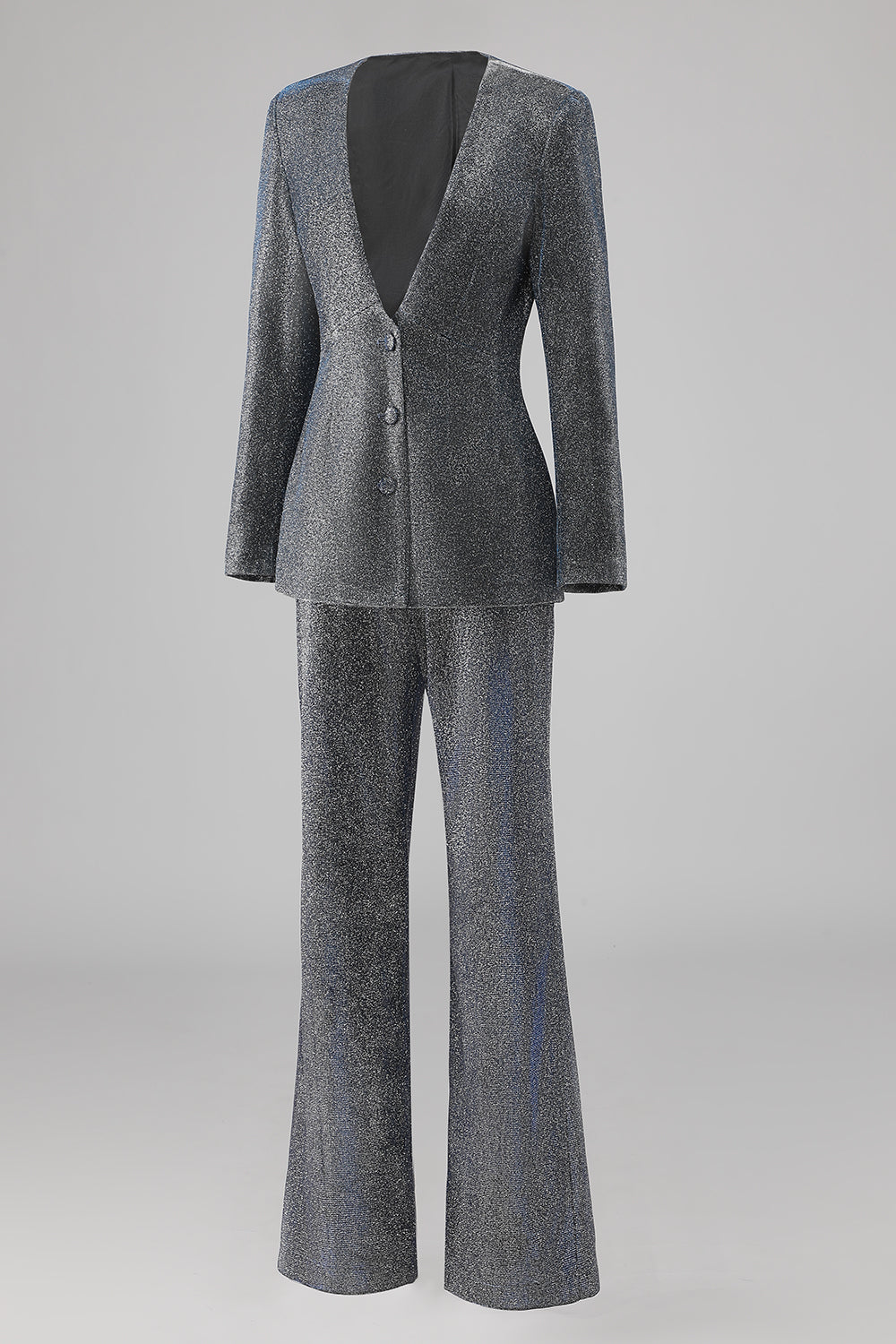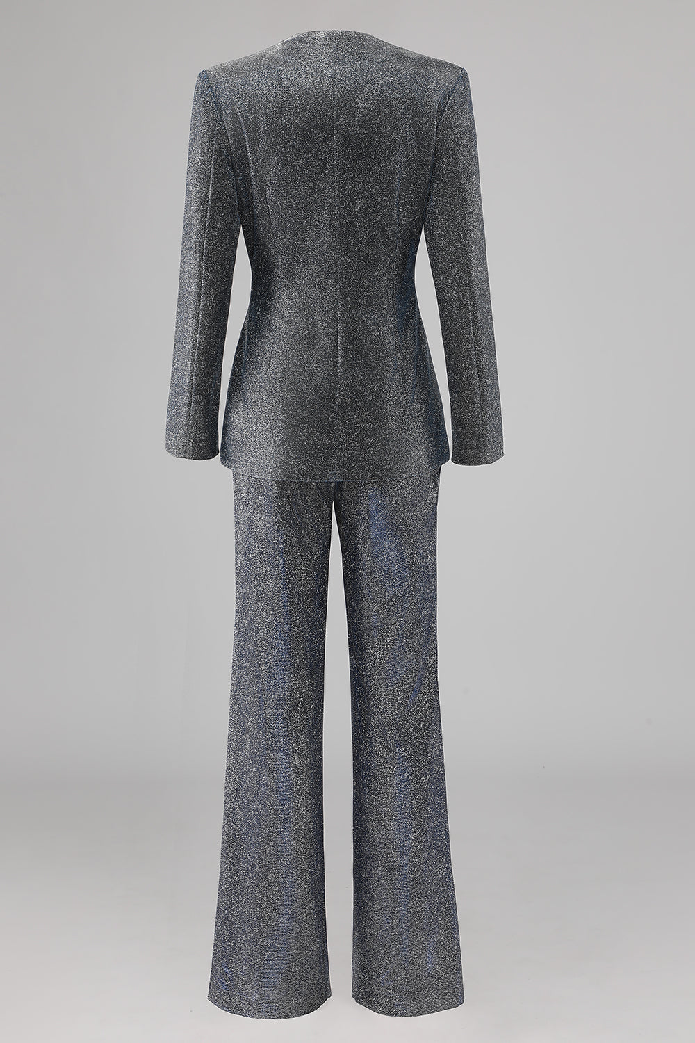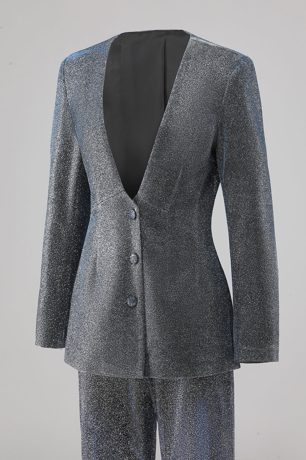 Grå Blå V-ringad Enkelknapp Dam Kostymer