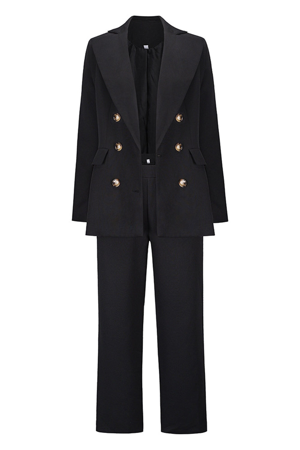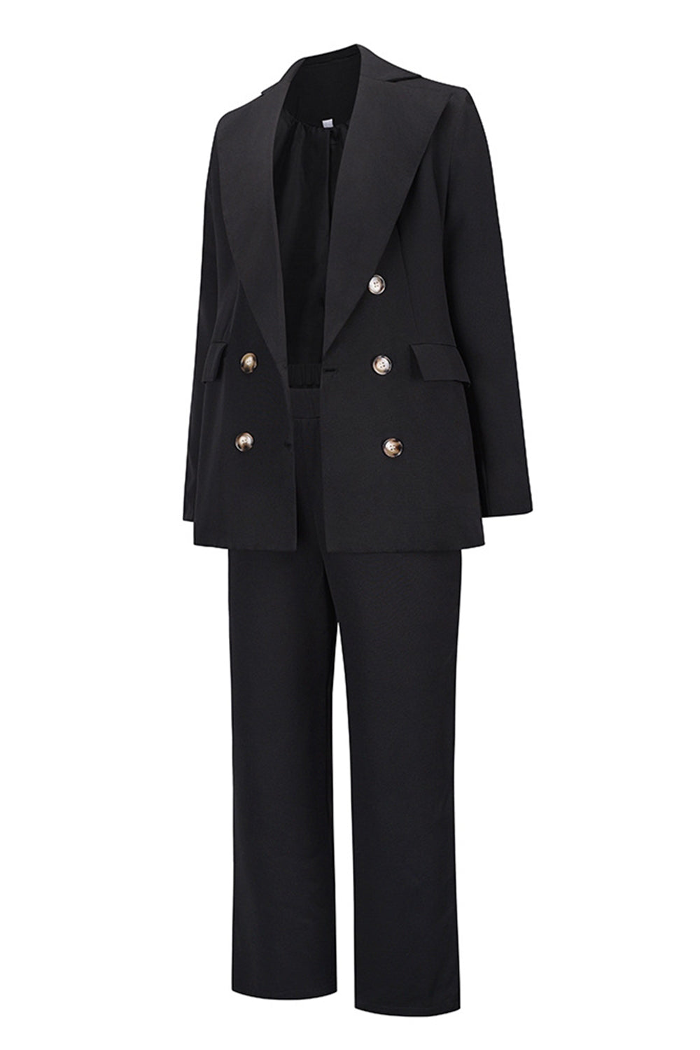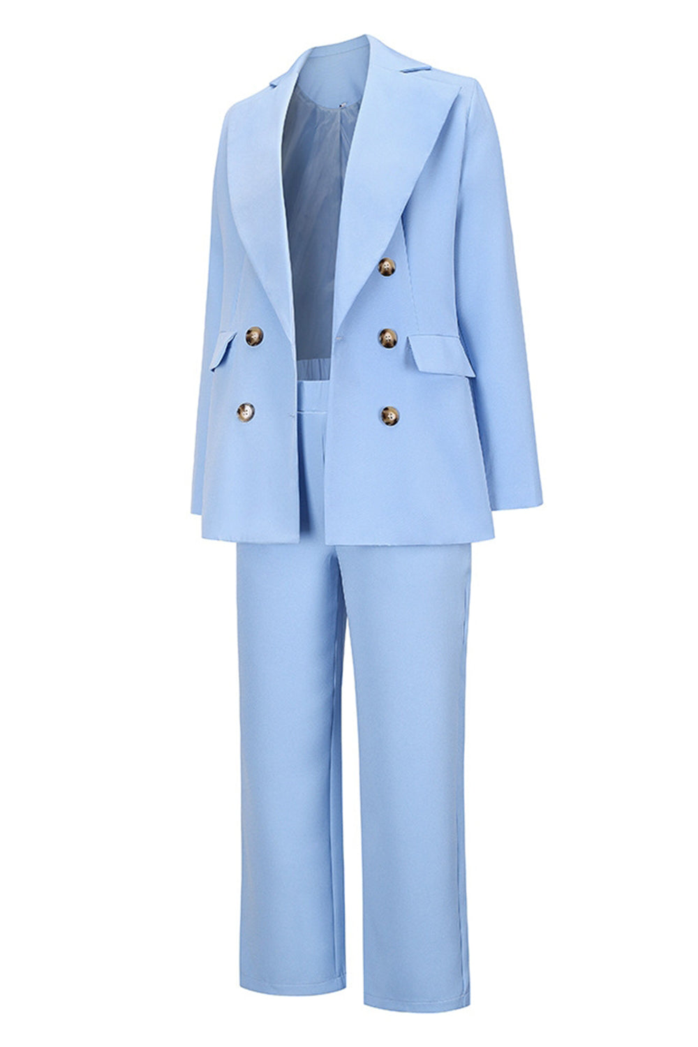 Stor Kavajslag Dubbelknäppt Kavaj Casual Raka Byxor Kostym