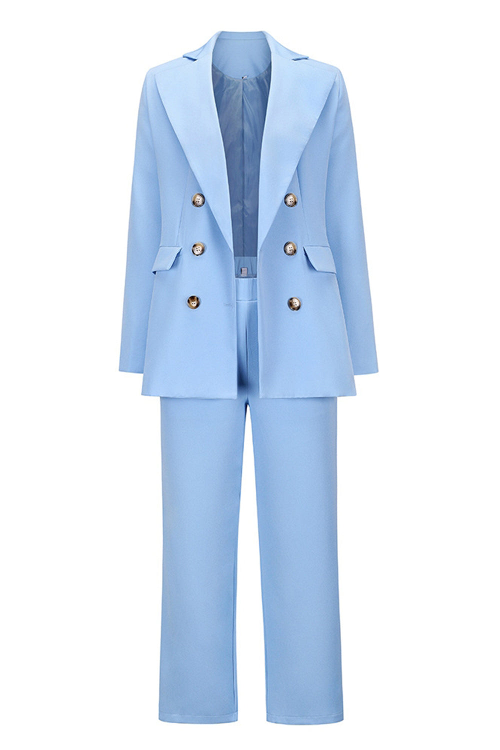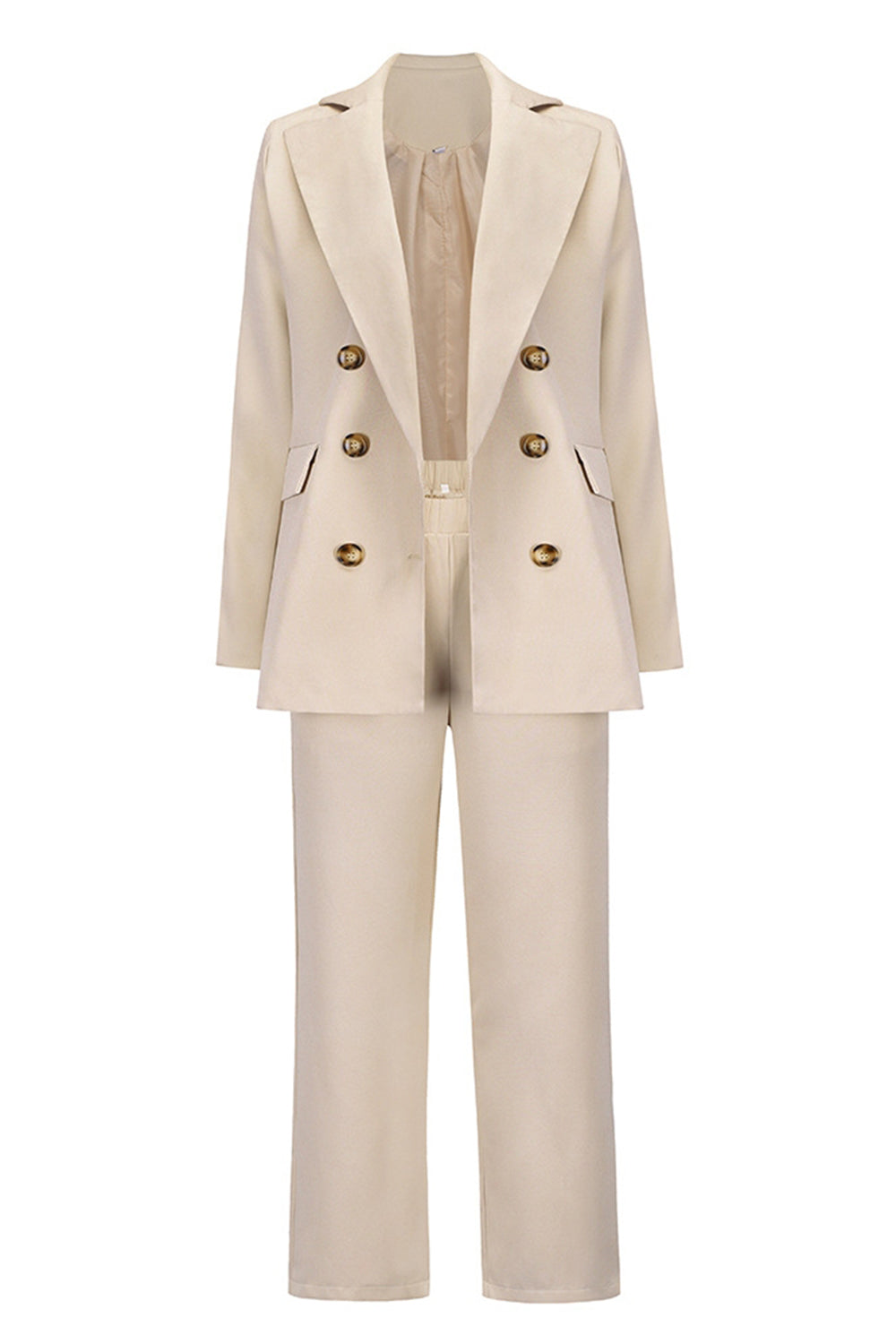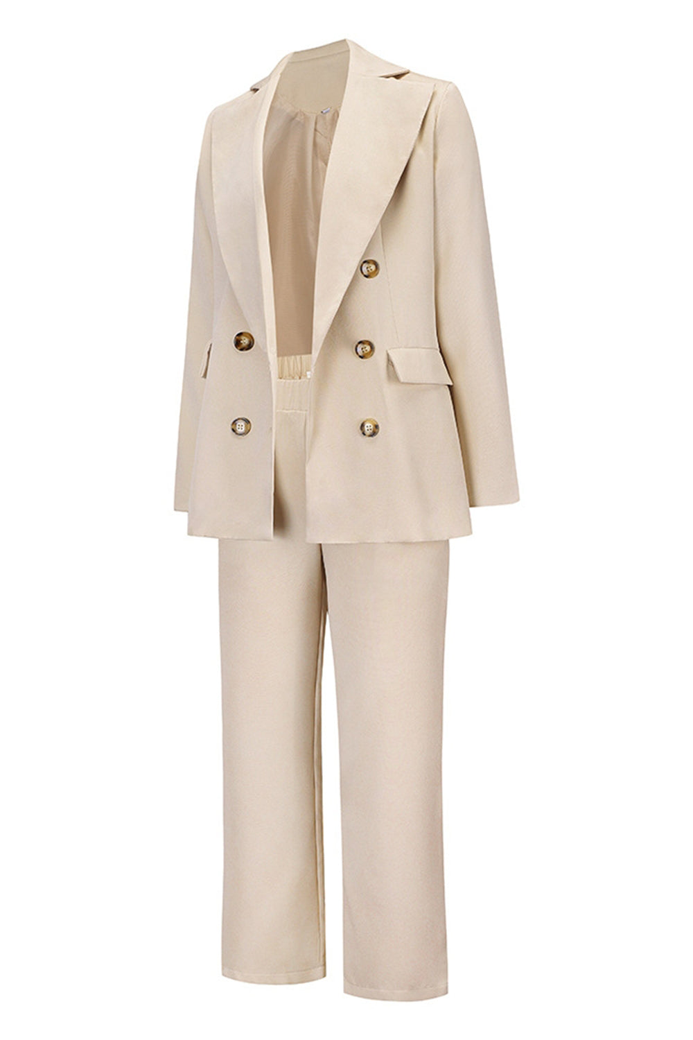 Stor Kavajslag Dubbelknäppt Kavaj Casual Raka Byxor Kostym