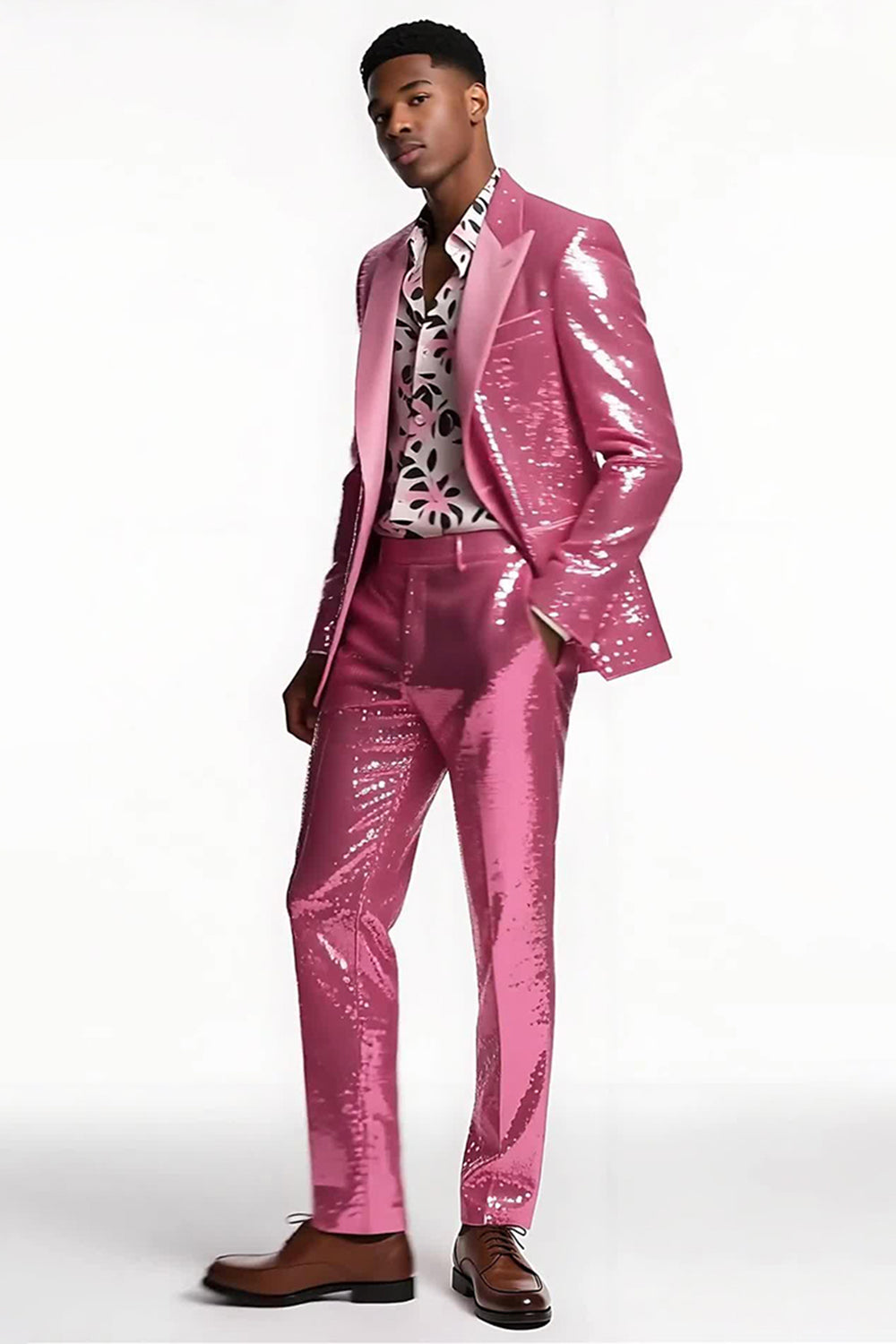 Glittrande rodnad Peak Kavajslag 2-delat Baldräkter för män