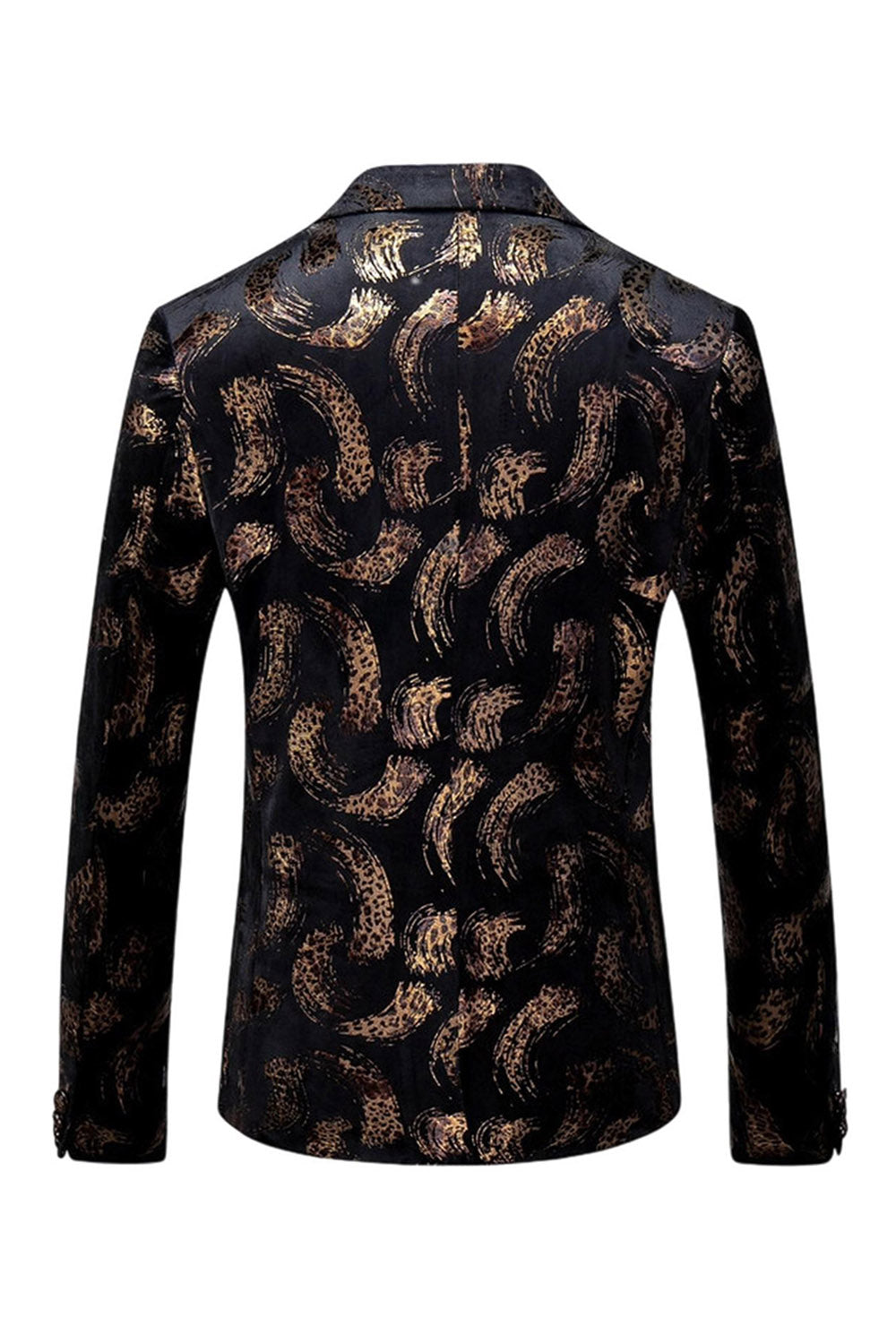 Mäns Svart Gyllene Tryckt Notched Kavajslag Bal Kavaj