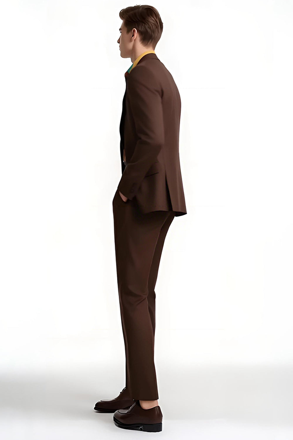 Mörkbrun Notched Kavajslag Slim Fit Baldräkter