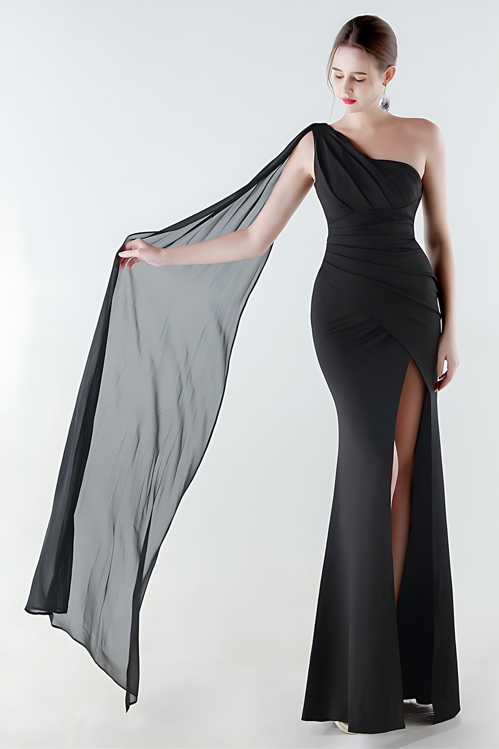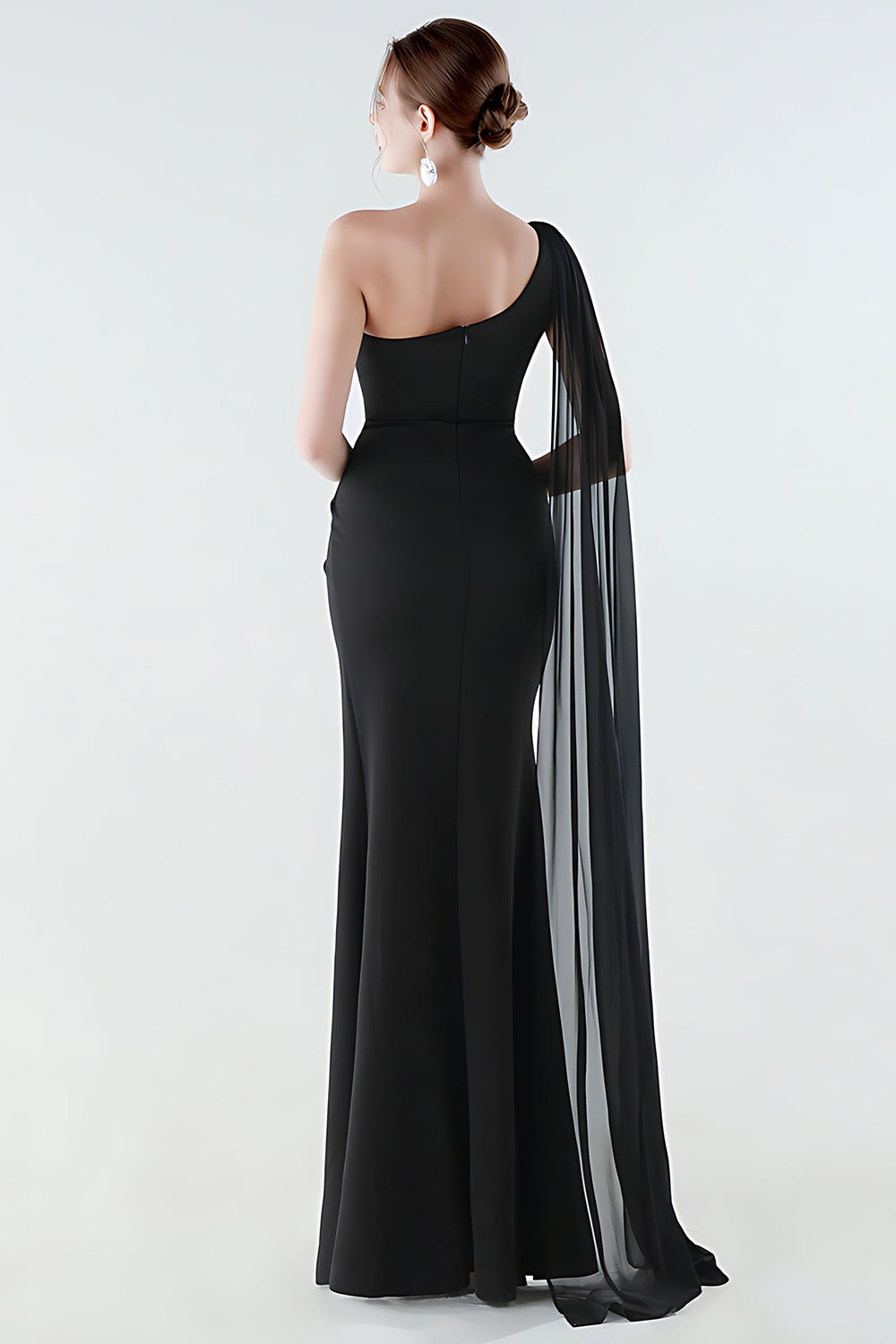 Enaxlad sjöjungfru svart formell klänning med serpentinen