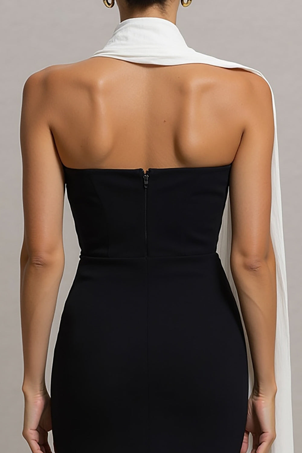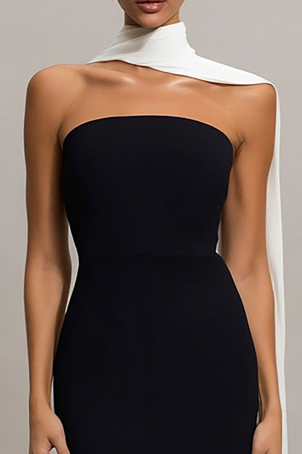 Svart axelbandslös sjöjungfru Konvertibel lång formell klänning med halsduk