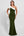 Olivfärgad V-hals skåpa med rynkad sammetsklänning med lång formell klänning med slits