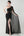 Axelbandslös svart och vit formell klänning med rynkad slida