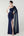Marinblå satin med V-ringad långärmad formell klänning med rynkor och långärmade