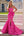 Fuchsia Mermaid Streamer Pärlstav Rynkad Lång Balklänning med Slits
