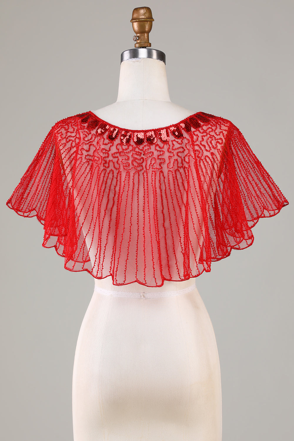 Paljetter Svart Glitter Kappan 1920-Tals med Pärlstav
