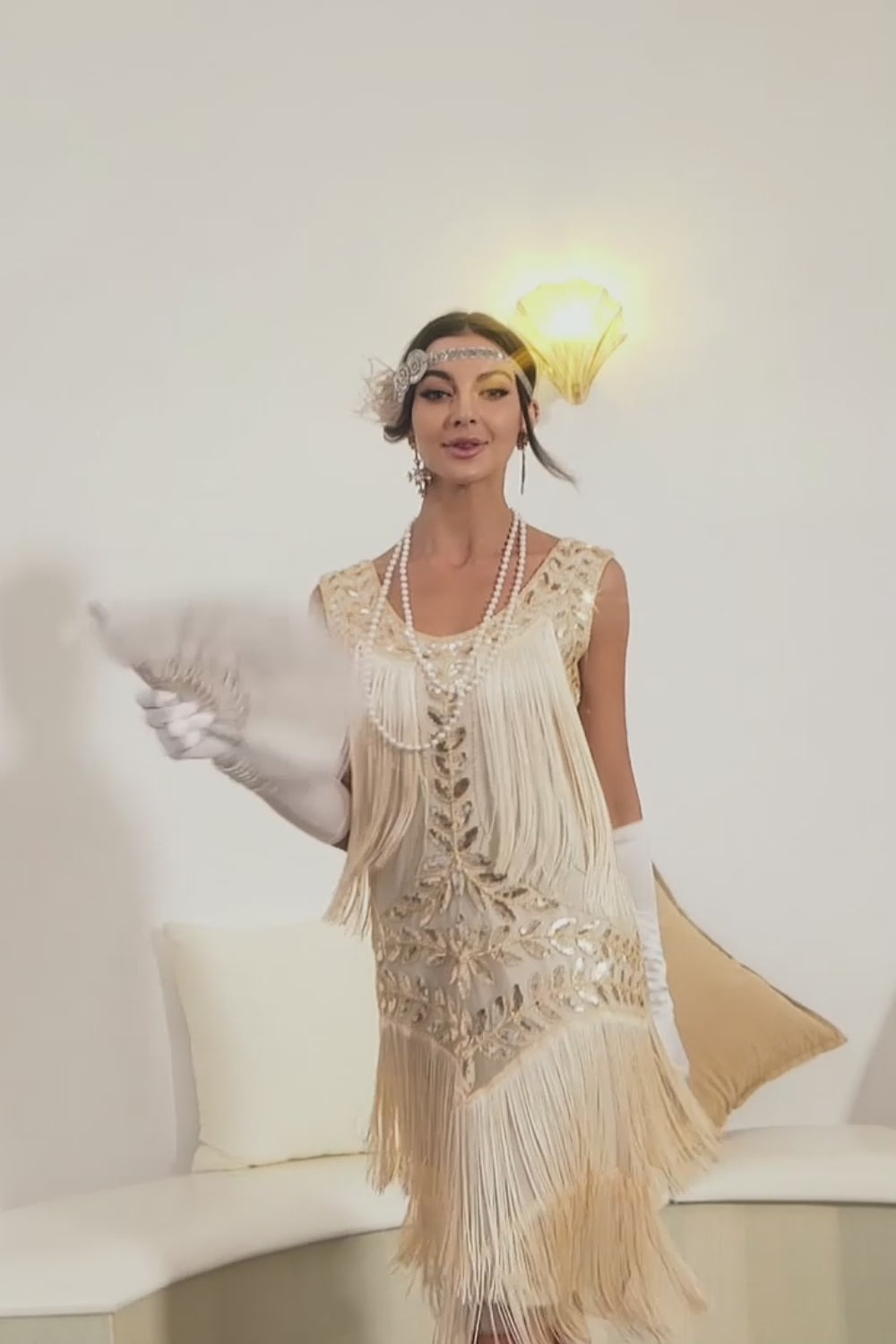 Champagne Gatsby 20 Tals Klänning med Paljetter och Fransar