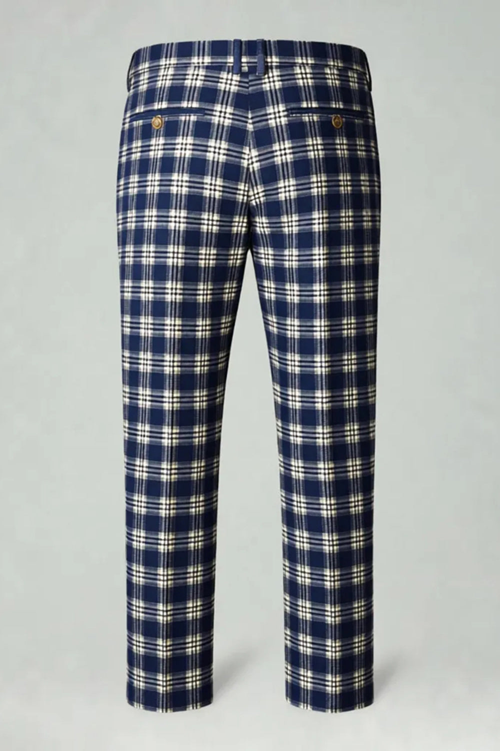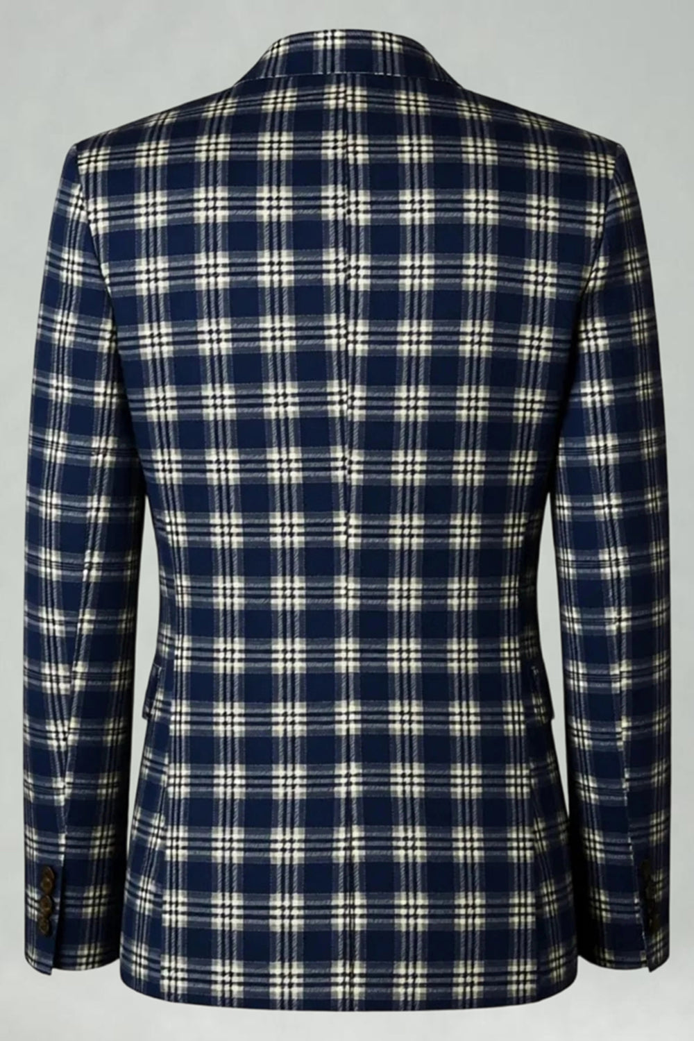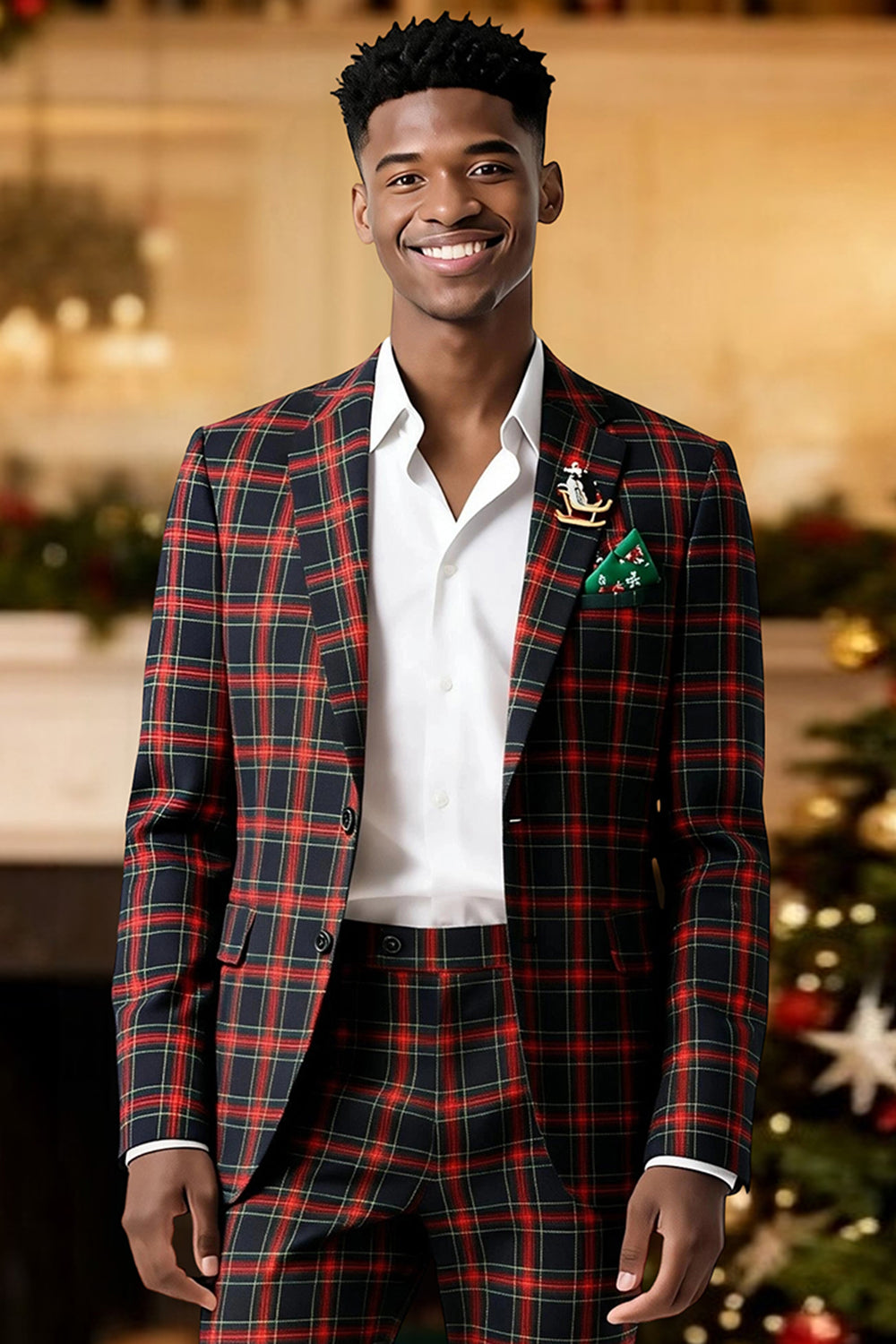 Brun Grå 2 Delad Notched Lapel Grid Mäns Baldräkter med fickor