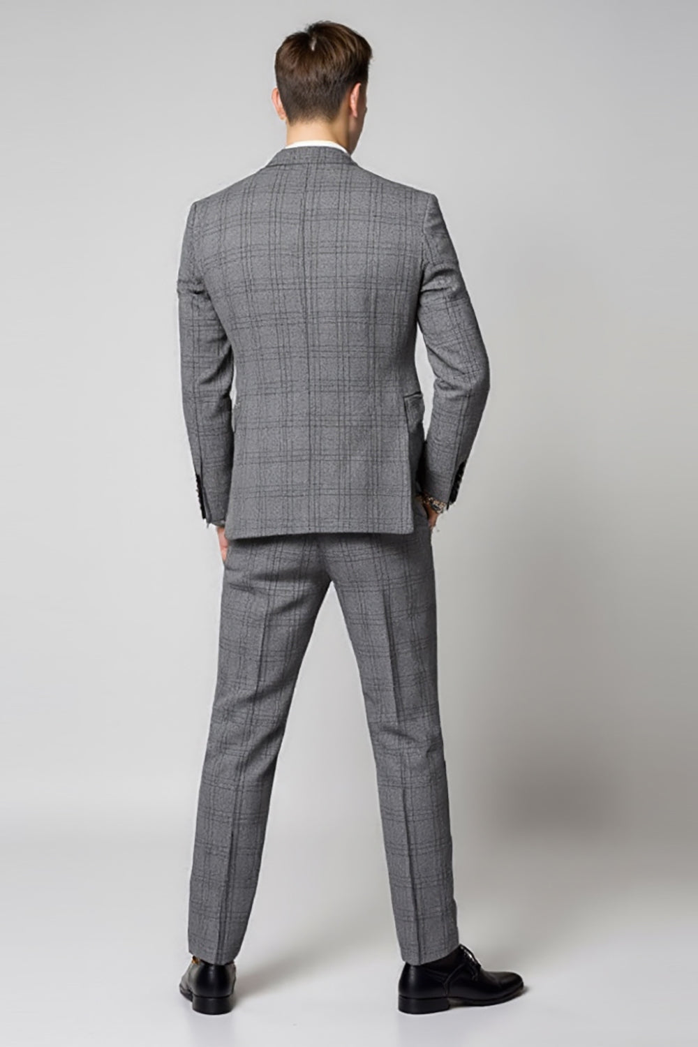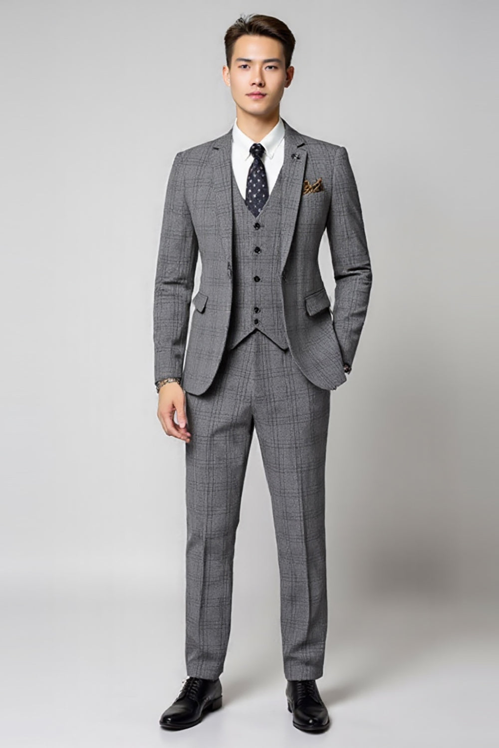 Grå Rutig Notched Kavajslag 3 stycken Baldräkter för män