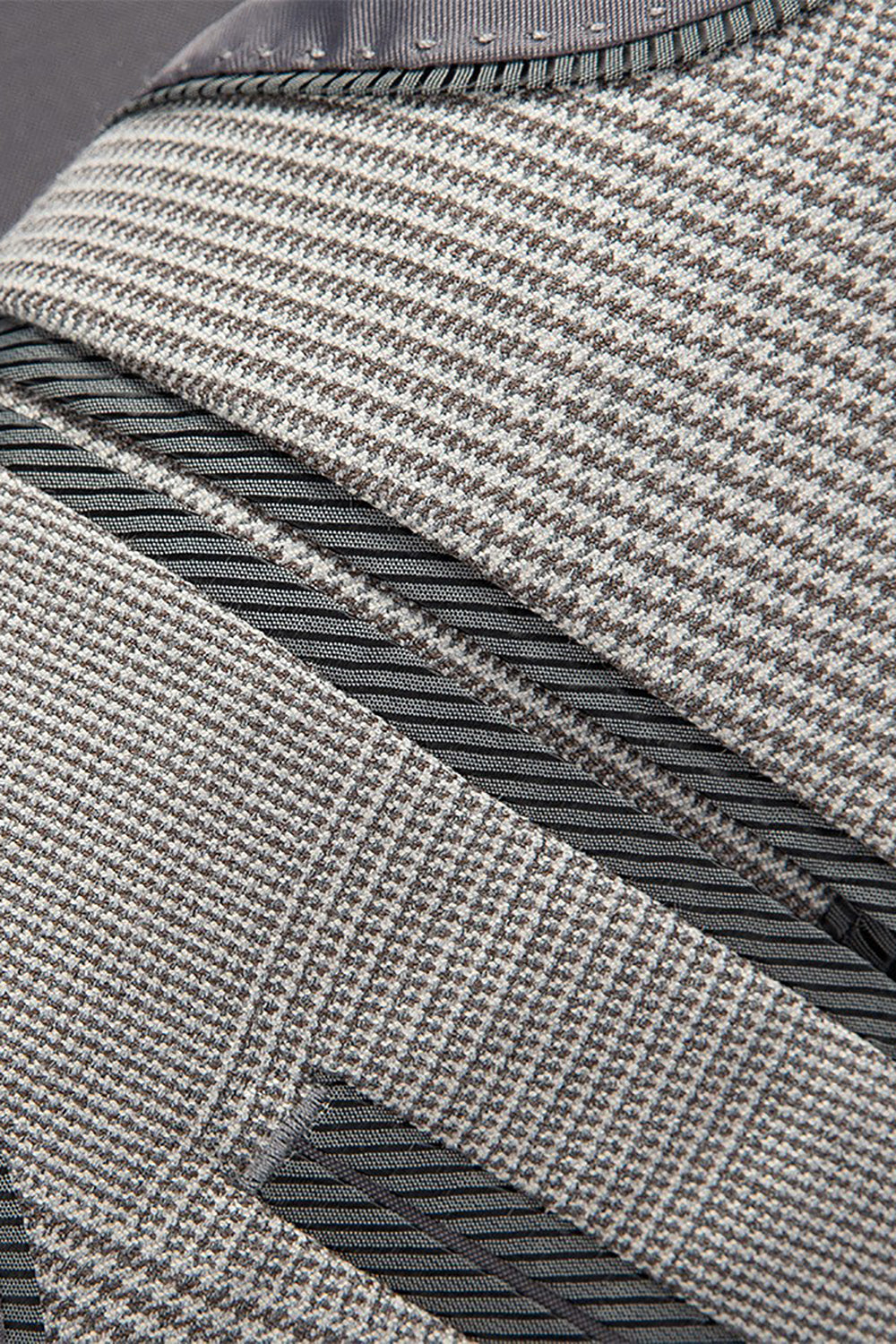 Grå rutig topp lapel 3 stycken män bröllopsdräkter