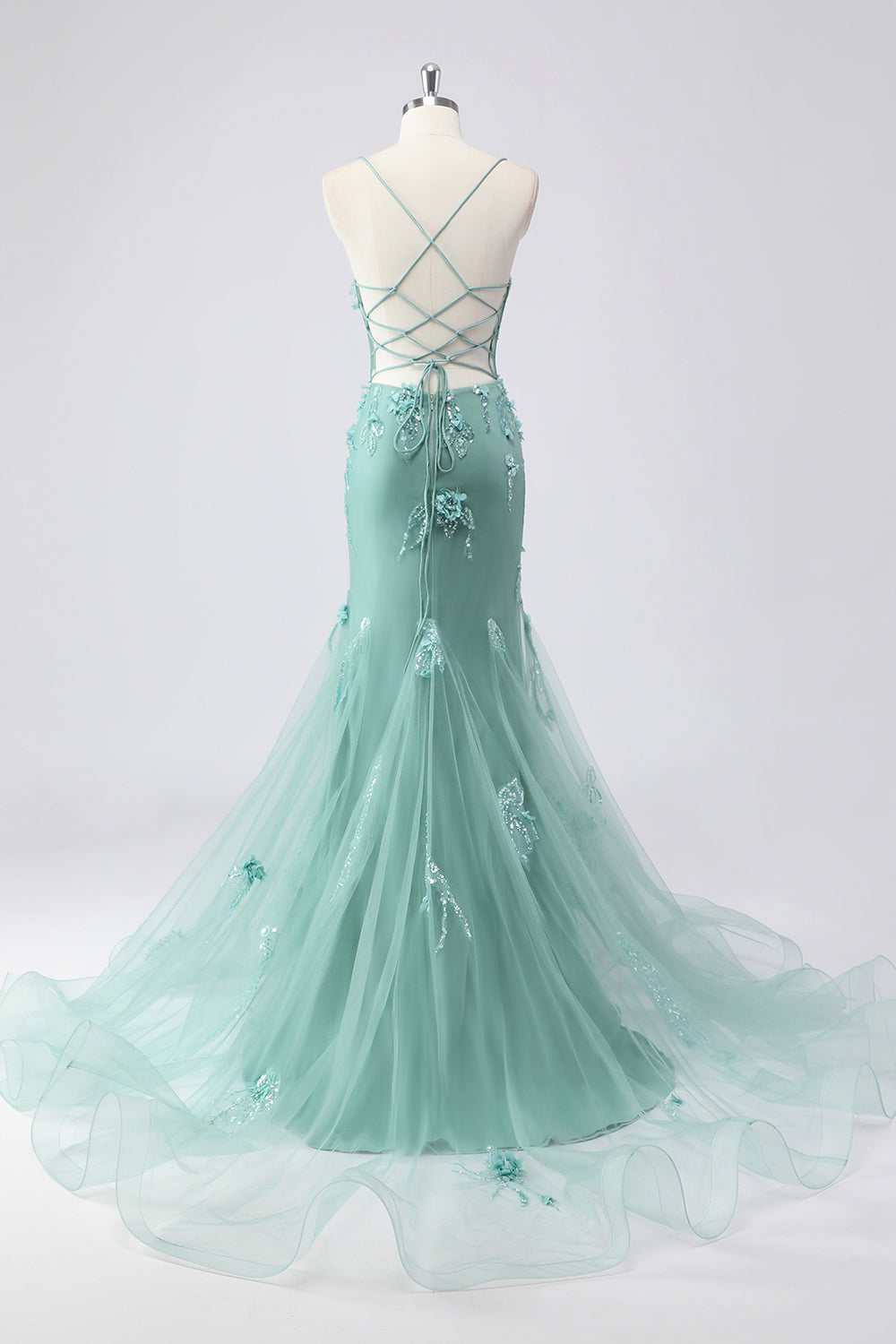 Grön sjöjungfrukorsett 3D blommor plusstorlek lång balklänning med snöre på ryggen