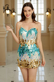 Unik mantel Spaghetti Remmar Blå Paljetter Kort Homecoming Klänning